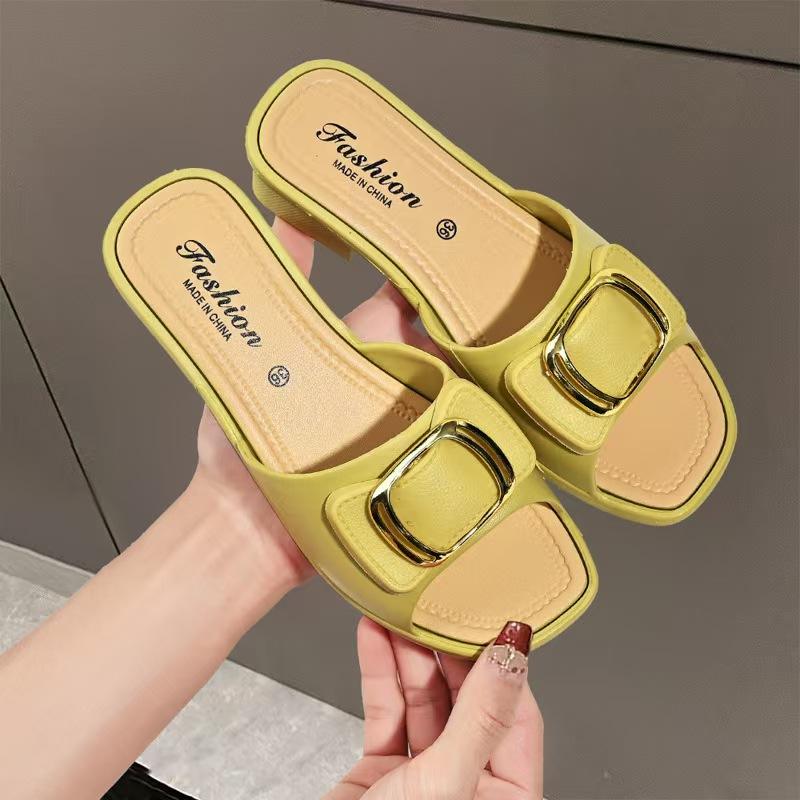 Summer Shoes for Women Thick Heel Open Toe Slippers Middle Heel Women Shoes PVC Sandalias De Mujer Heels Women