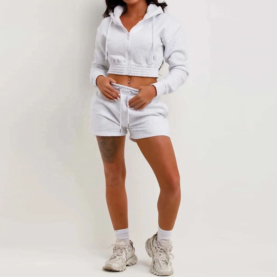 ชุดสั้นฤดูร้อนสำหรับผู้หญิงเสื้อมีฮู้ดและกางเกงขาสั้นชุดวอร์มมิ้นท์เชือกรูด