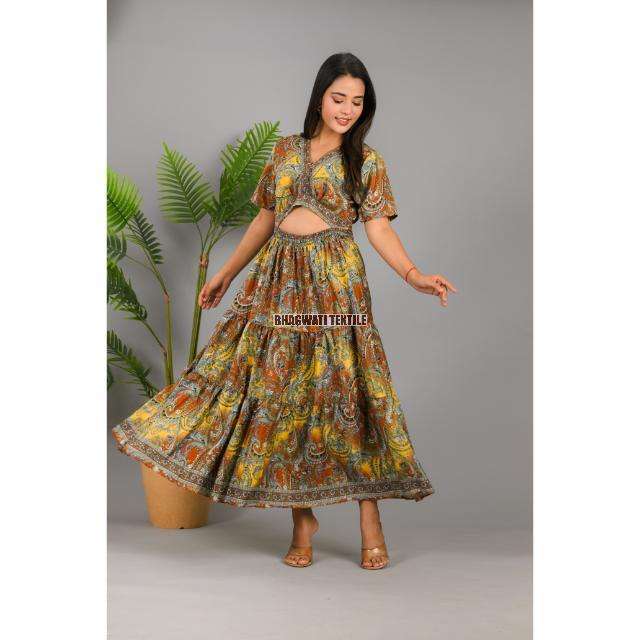 ชุดเดรสผ้าไหมฤดูร้อนสำหรับผู้หญิงชุดเดรสตะวันตกพิมพ์ลายใบไม้ชุดเดรสโบฮีเมียนทำด้วยมือคอวีของขวัญสำหรับผู้หญิง