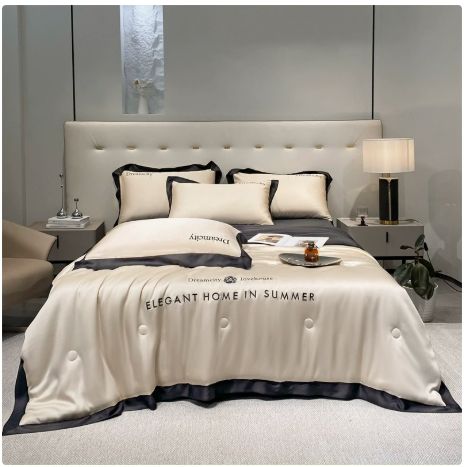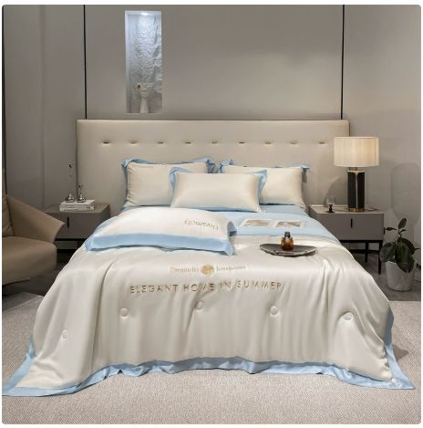 ผ้านวมไหมน้ำแข็งฤดูร้อน เย็นสบาย ซักได้ ใช้กับเครื่องปรับอากาศได้ น้ำหนักเบา สไตล์ยุโรปอเมริกัน ผลิตจากโพลีเอสเตอร์