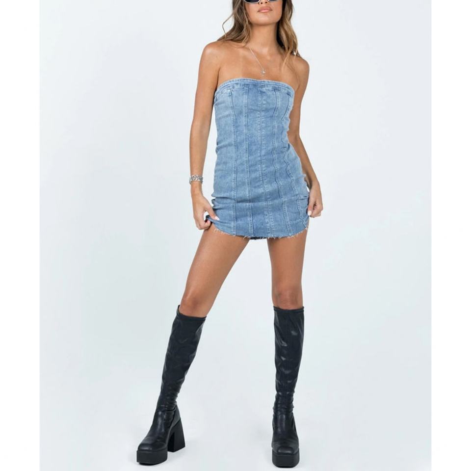 เดรสยีนส์ทรงมินิแบบสลิมฟิต สายเดี่ยว ซิปซ่อน สำหรับผู้หญิง