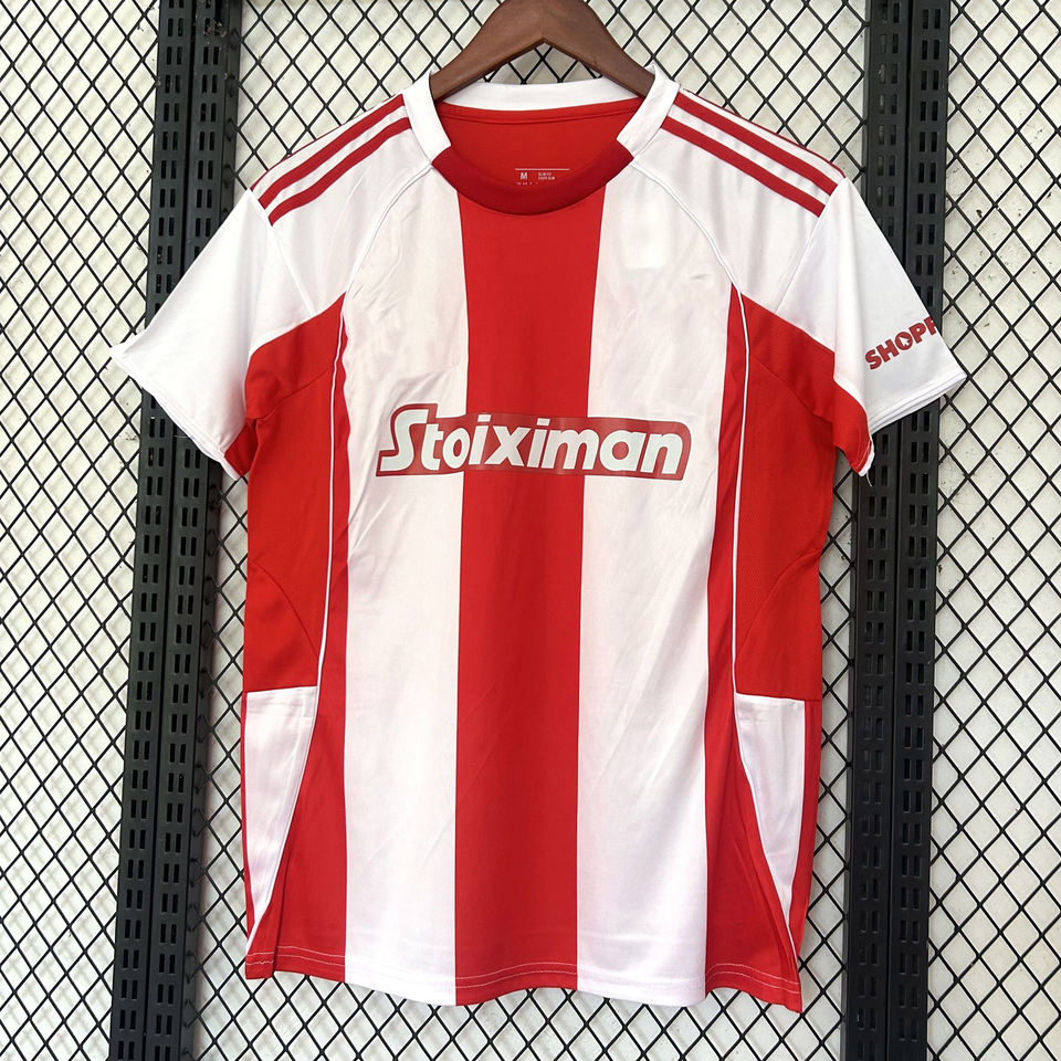 เสื้อฟุตบอลฤดูร้อนพิมพ์ลายออกแบบเอง 2025/26 โอลิมปิกาโกส ปีราเอุส ชุดเหย้า/เยือน คอกลม แห้งเร็ว แขนสั้น