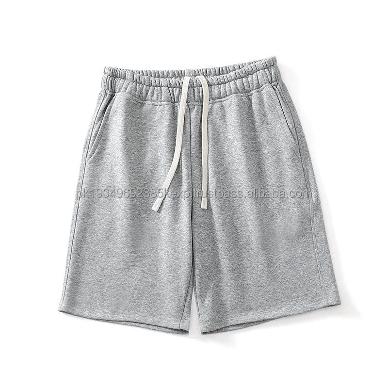กางเกงขาสั้นผ้าคอตตอนเทอร์รี่สำหรับผู้ชายกางเกงขาสั้นเล่นฟิตเนสเล่นกีฬาฤดูร้อน