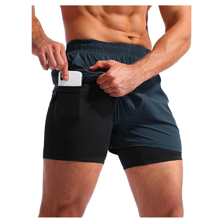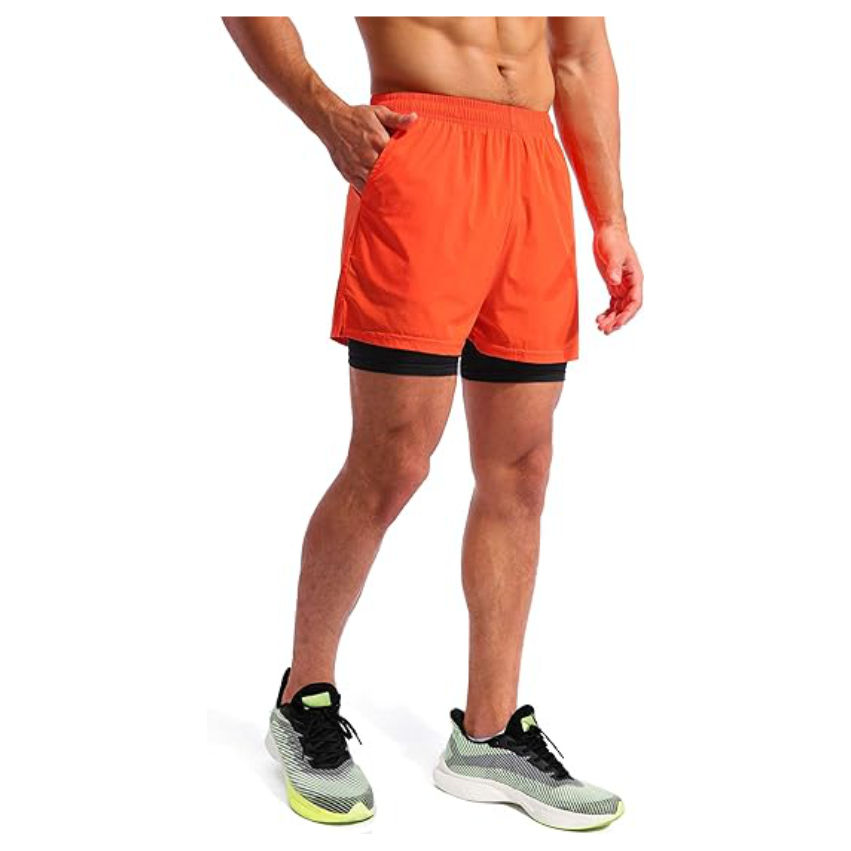 กางเกงกีฬาขาสั้นสำหรับผู้ชายกางเกงขาสั้นวิ่ง2-in-1กางเกงชายหาดกางเกงออกกำลังกายกางเกงวิ่งช้า