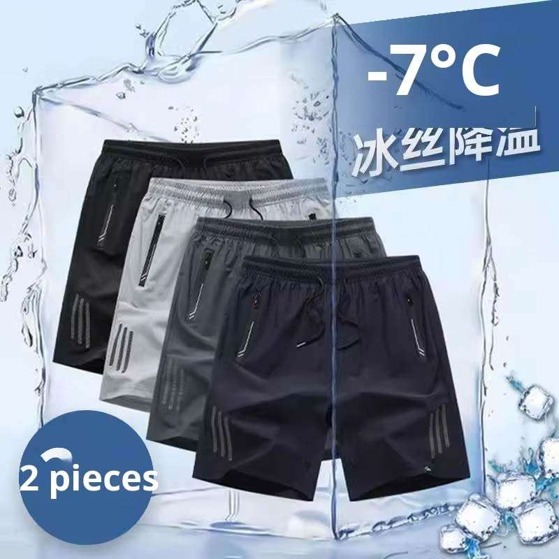 กางเกงกีฬาขาสั้นสำหรับผู้ชาย, เสื้อผ้าลำลองกลางแจ้งแห้งเร็วขนาดใหญ่พิเศษย้อมธรรมดาทรงหลวมพอดีตัวฤดูร้อน
