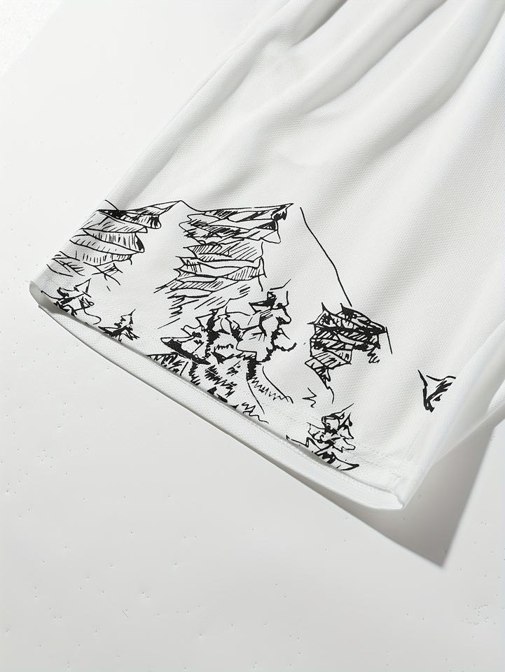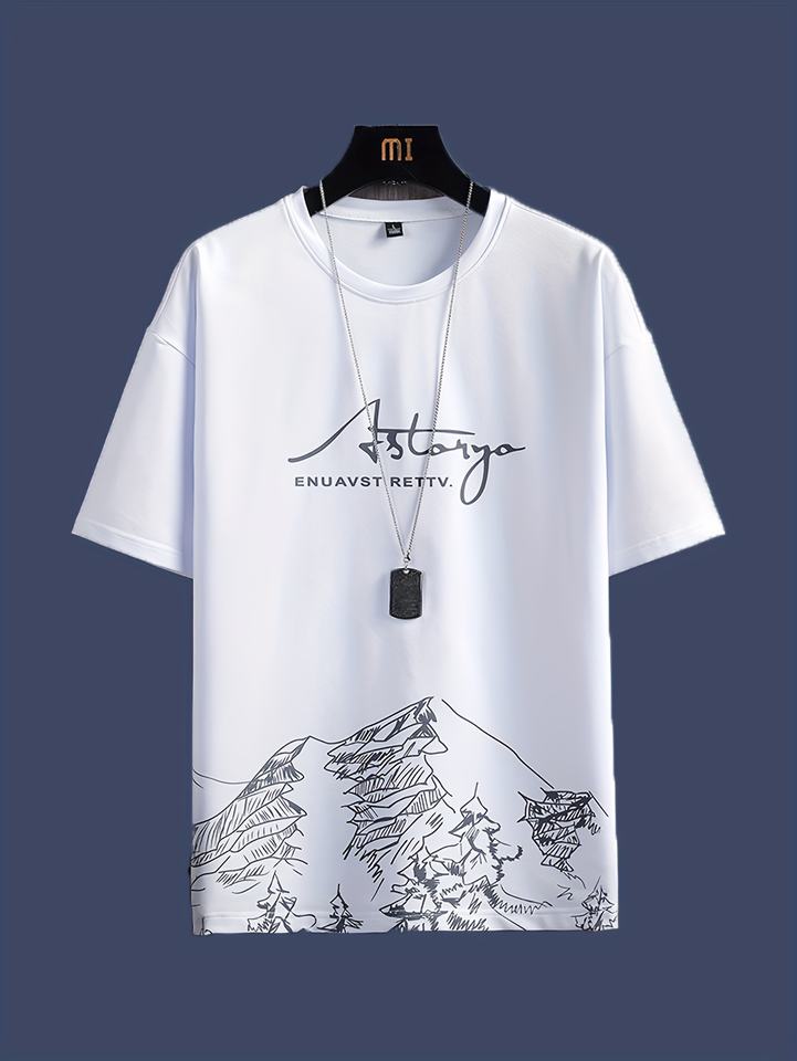 ชุดกีฬาฤดูร้อนทรงหลวมพิมพ์ลายเสื้อยืดแขนสั้นกางเกงครอปแบบเรียบง่ายชุดสูทลำลองสำหรับผู้ชาย