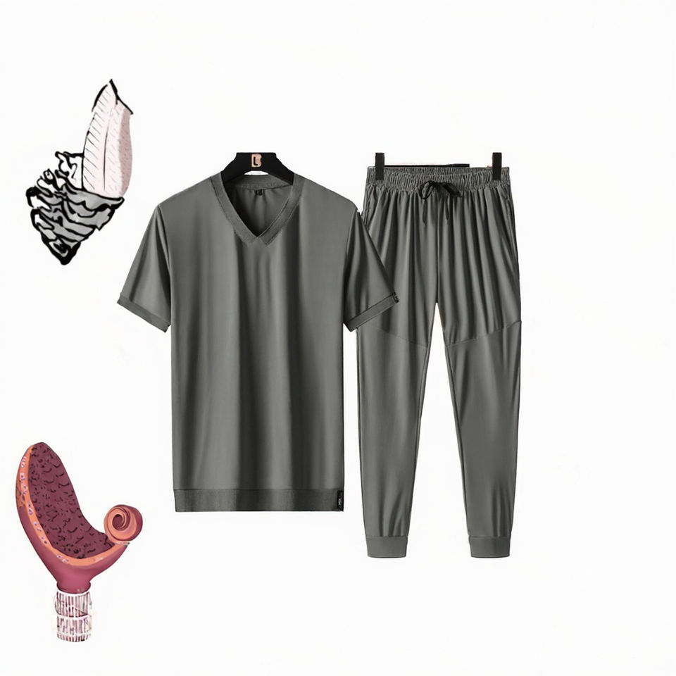 ชุดกีฬาฤดูร้อน แห้งเร็ว แขนสั้น น้ำหนักเบา ทันสมัย สไตล์ลำลอง ชุดสองชิ้น คอวี ผ้าเย็น
