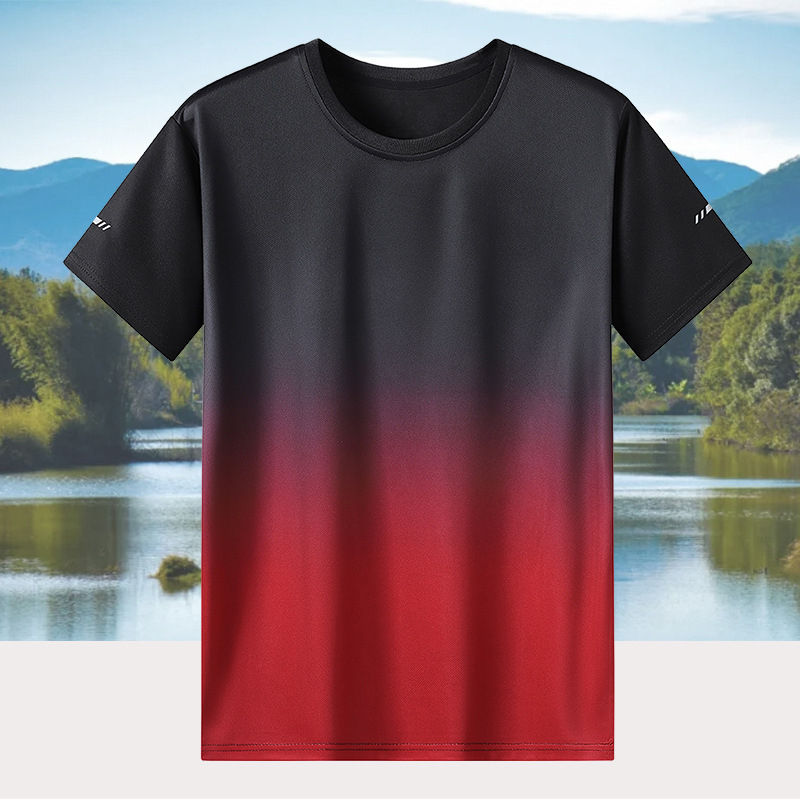 Summer Sports T-Shirt for Men and Women Quick-Drying Ice Silk with Two-Open Crew Neck Fashionable Ice Silk Top for Gym Use