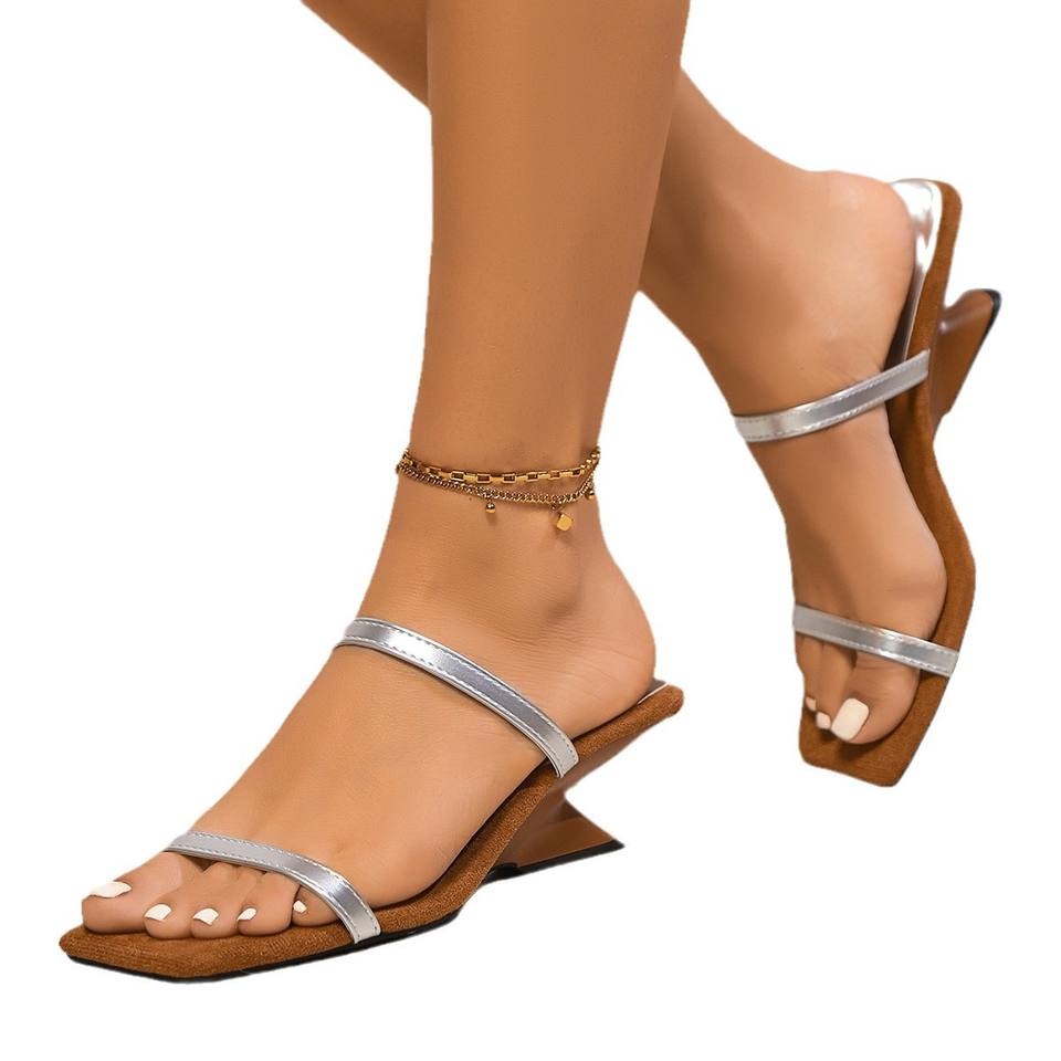 รองเท้าผ้าใบผู้หญิงทรงสี่เหลี่ยม, รองเท้าแฟชั่นส้นสูงเปิดนิ้วเท้าขนาดใหญ่พิเศษมาใหม่ฤดูร้อน