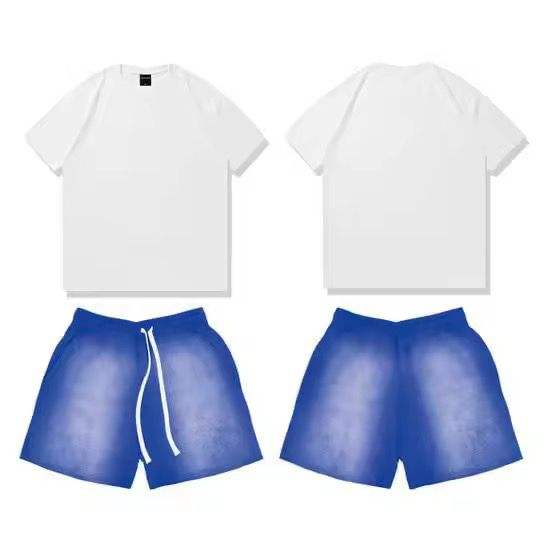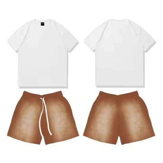 ชุดเสื้อยืดและกางเกงขาสั้นผู้ชายลายพิมพ์ตัวอักษรแบบกำหนดเอง ผ้าคอตตอนหนานุ่ม ทรงเข้ารูป สไตล์ลำลองสำหรับฤดูร้อน