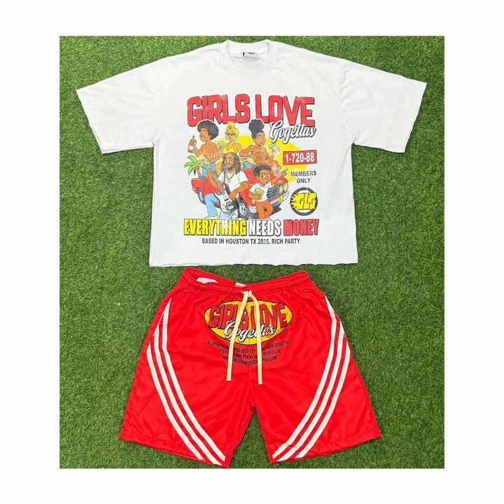ชุดเสื้อยืดและกางเกงขาสั้นผ้าฝ้ายพิมพ์ลายกราฟิกสำหรับฤดูร้อนชุด2ชิ้นแบบลำลองชุดผ้าฝ้าย OEM พิมพ์โลโก้ได้ตามต้องการ