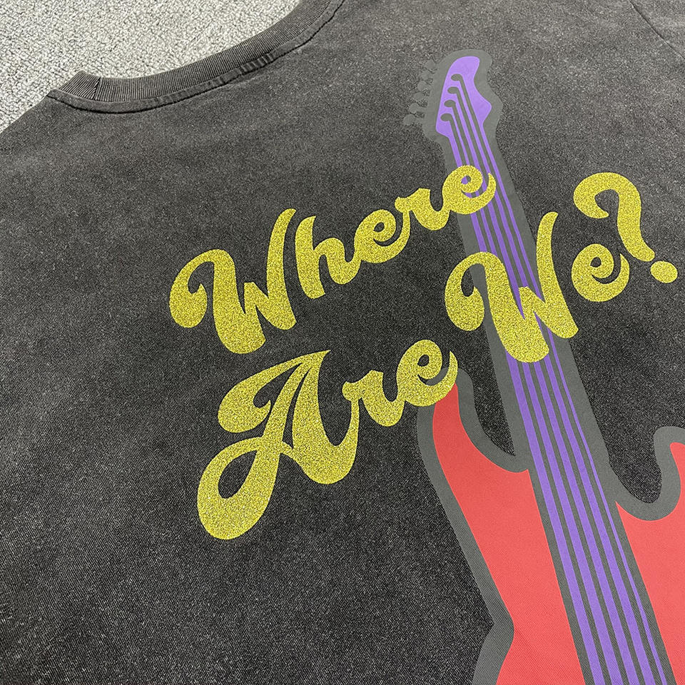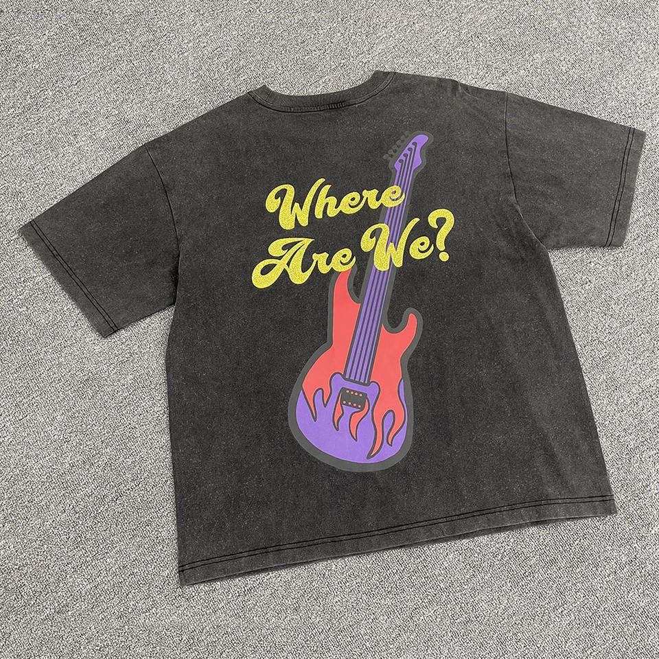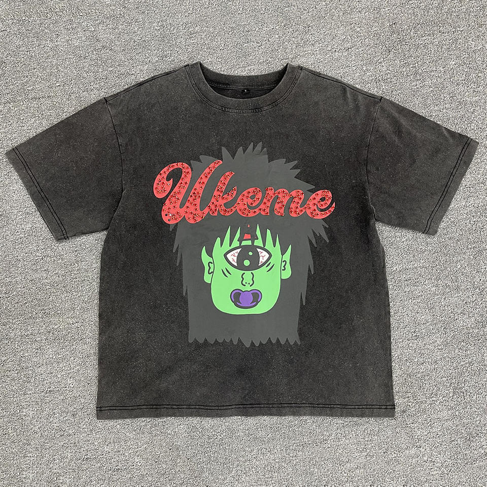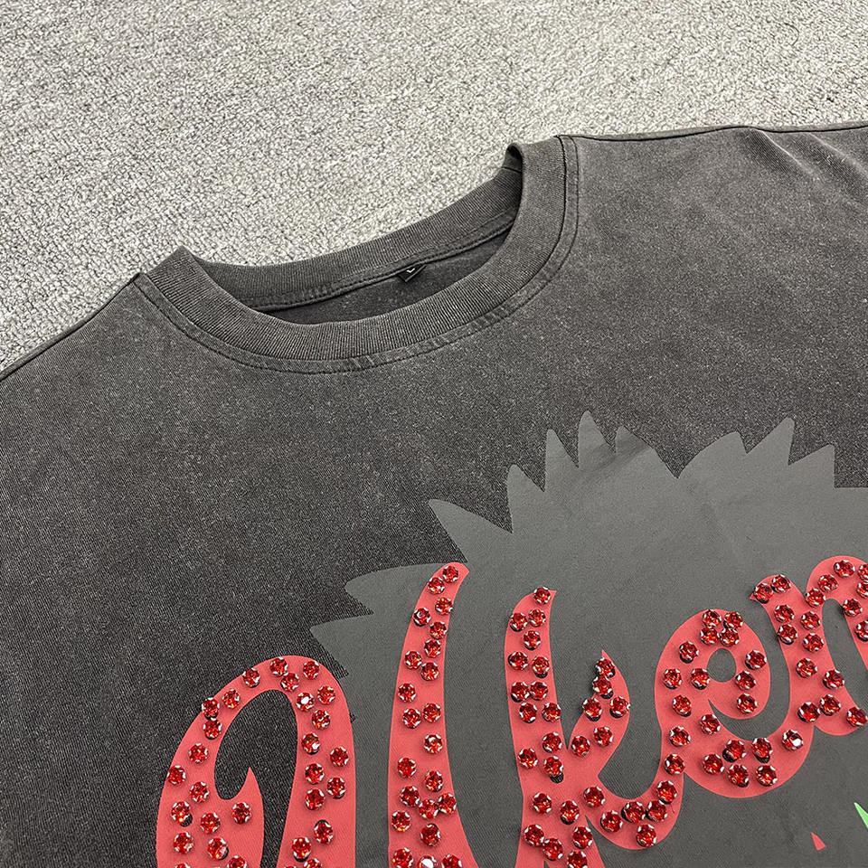 เสื้อยืดโอเวอร์ไซส์ลายกราฟิกพิมพ์ลายแบบแอซิดวอช ประดับด้วยคริสตัล สไตล์สตรีทแวร์สำหรับฤดูร้อน