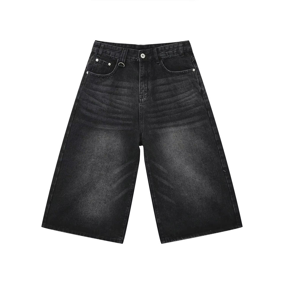 กางเกงยีนส์ขาสั้นทรงตรงสำหรับผู้ชายกางเกงขาสั้นผ้ายีนส์ฟอกสีเข้มสำหรับฤดูร้อน