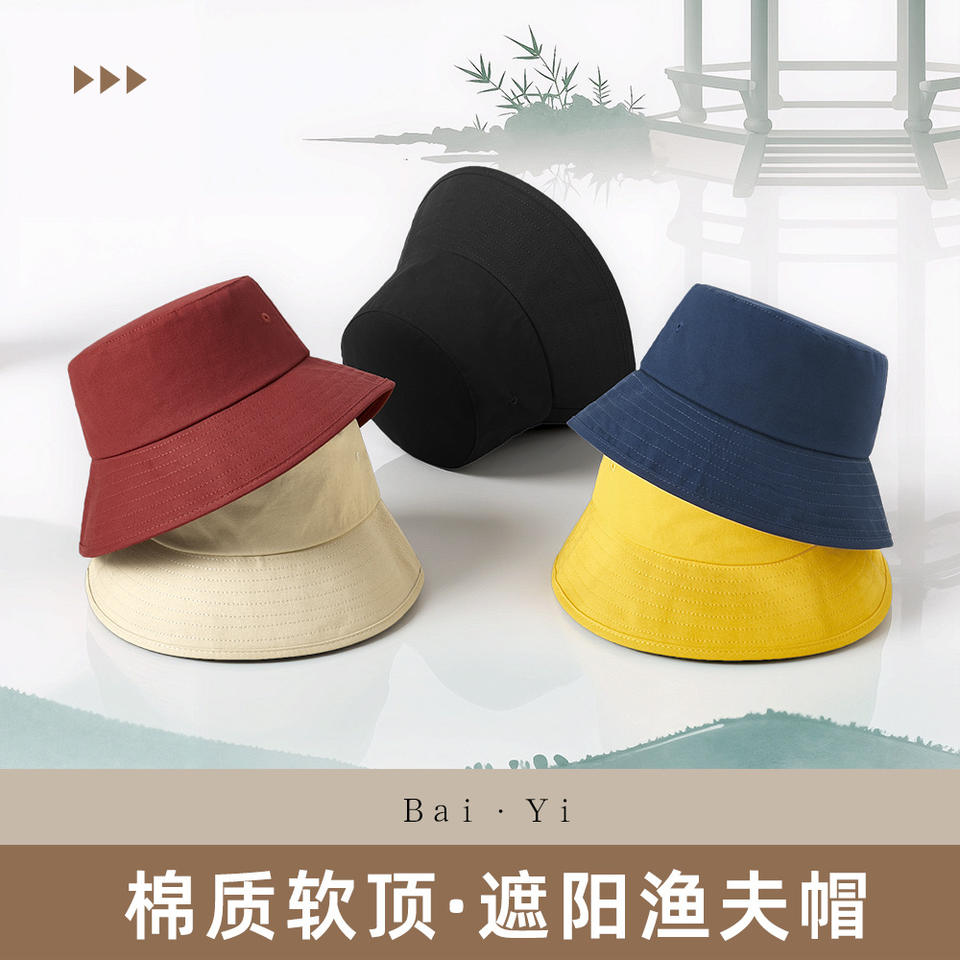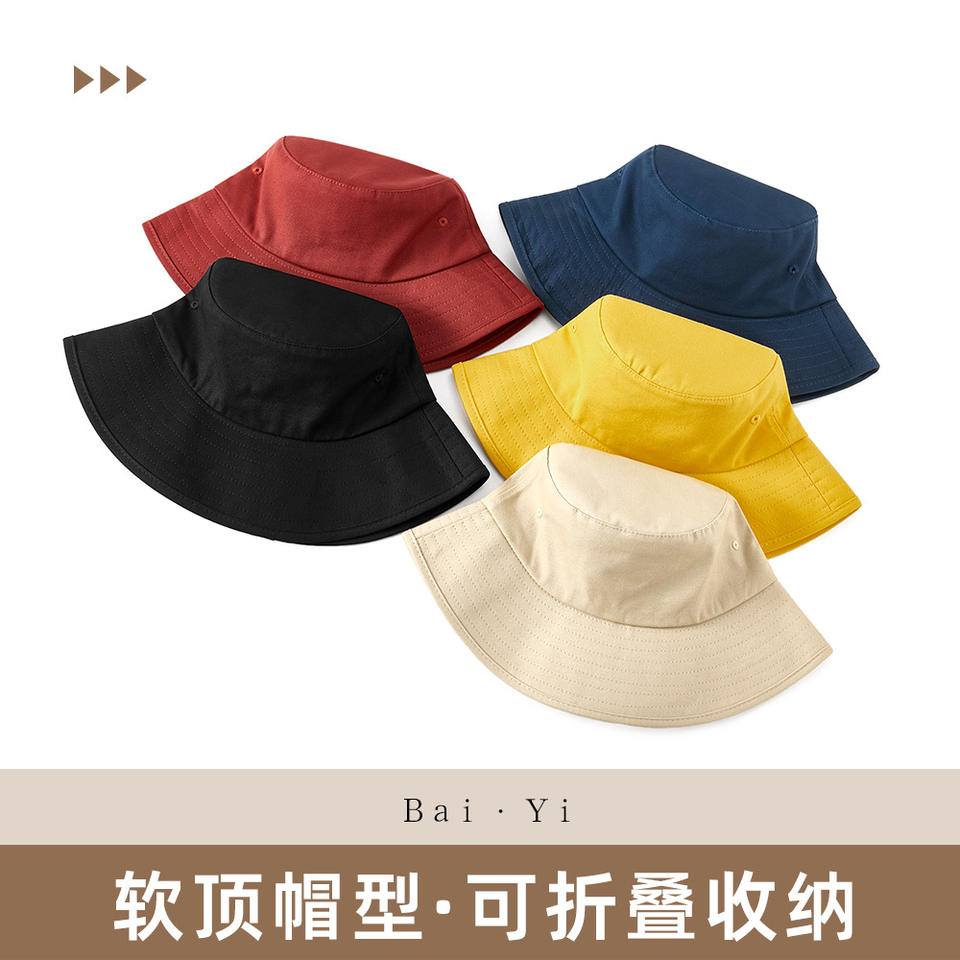 หมวกบักเก็ตป้องกันแสงแดดสำหรับฤดูร้อน ผู้หญิง สีพื้น ผ้าฝ้าย พับได้ สำหรับกิจกรรมกลางแจ้ง เดินป่า ตกปลา หมวกกันแดด
