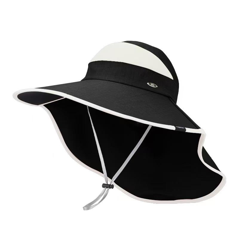 หมวกป้องกันแสงแดดฤดูร้อนสำหรับผู้หญิงหมวกปีกกว้างพร้อมผ้าคลุมคอป้องกันรังสียูวีพับได้กลางแจ้งปั่นจักรยานม่านบังแดดสีเบจ