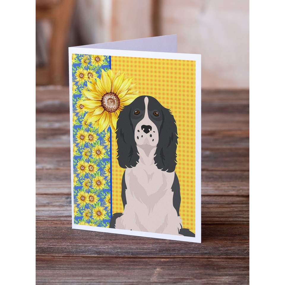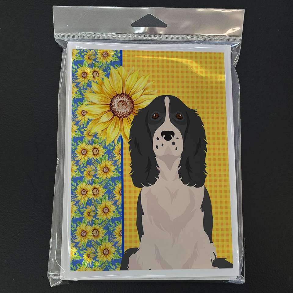 การ์ดเปล่าสำหรับฤดูร้อน Sunflowers ขนาด5x7การ์ดอวยพรสีดำ8ใบสไตล์อังกฤษสปริงเกอร์สแปเนียลมีซอง