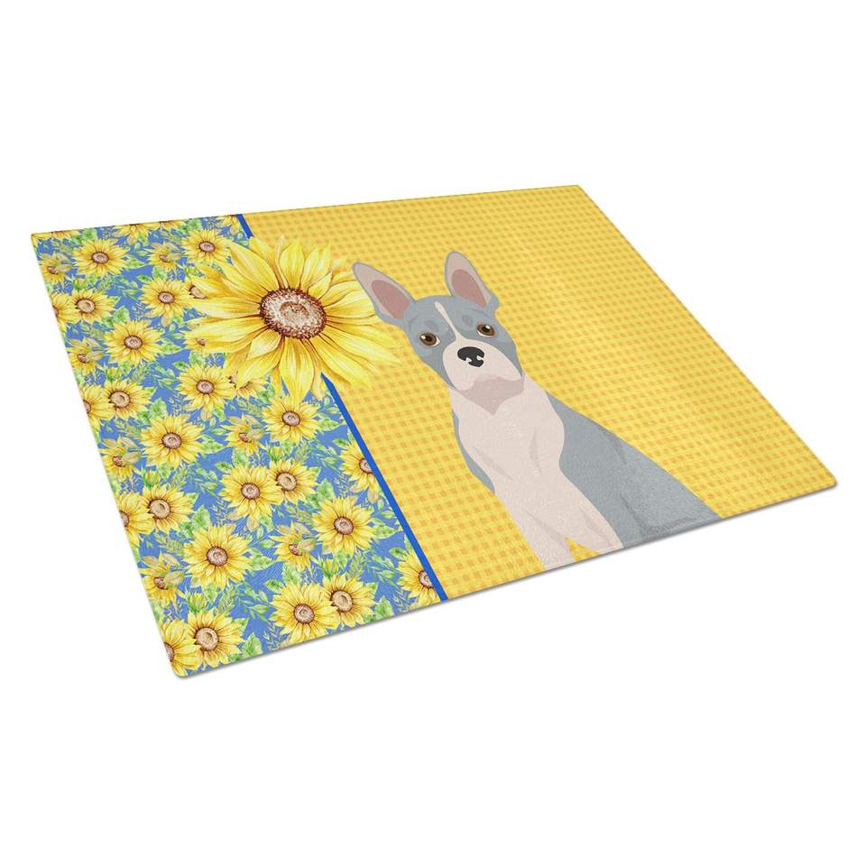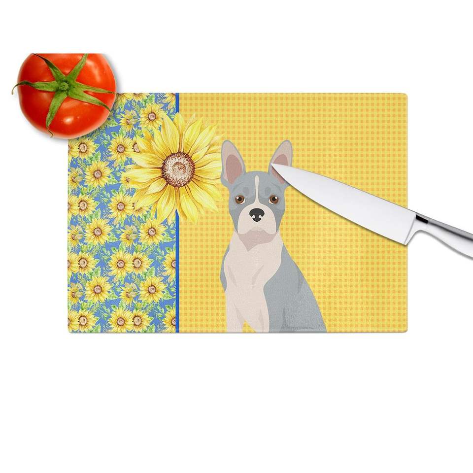 เขียงขนาดใหญ่ลายดอกทานตะวันและสีฟ้าสไตล์บอสตันเทอร์เรียสำหรับใช้ในห้องครัว