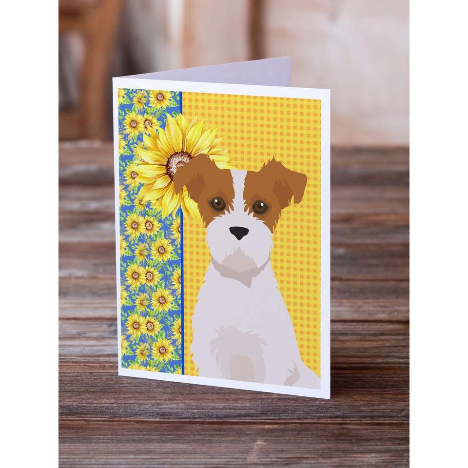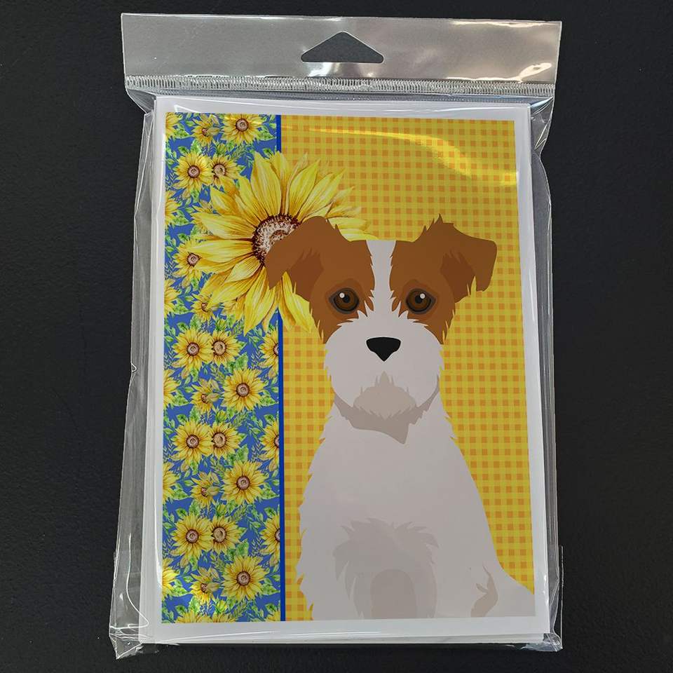 การ์ดอวยพร wirehair แจ็ค Russell Terrier 8แปลกๆขนาด A7 5x7สำหรับฤดูร้อน Sunflowers