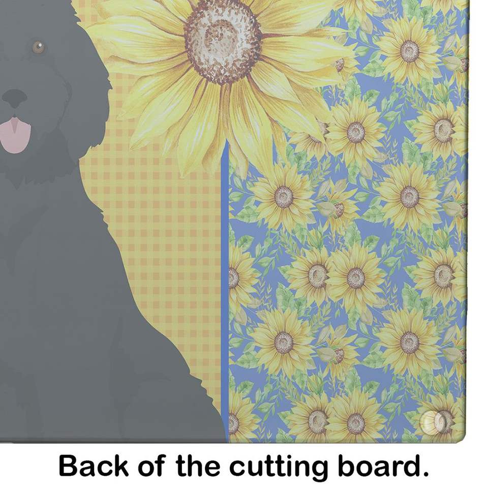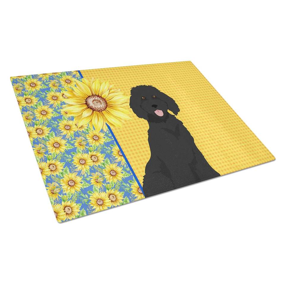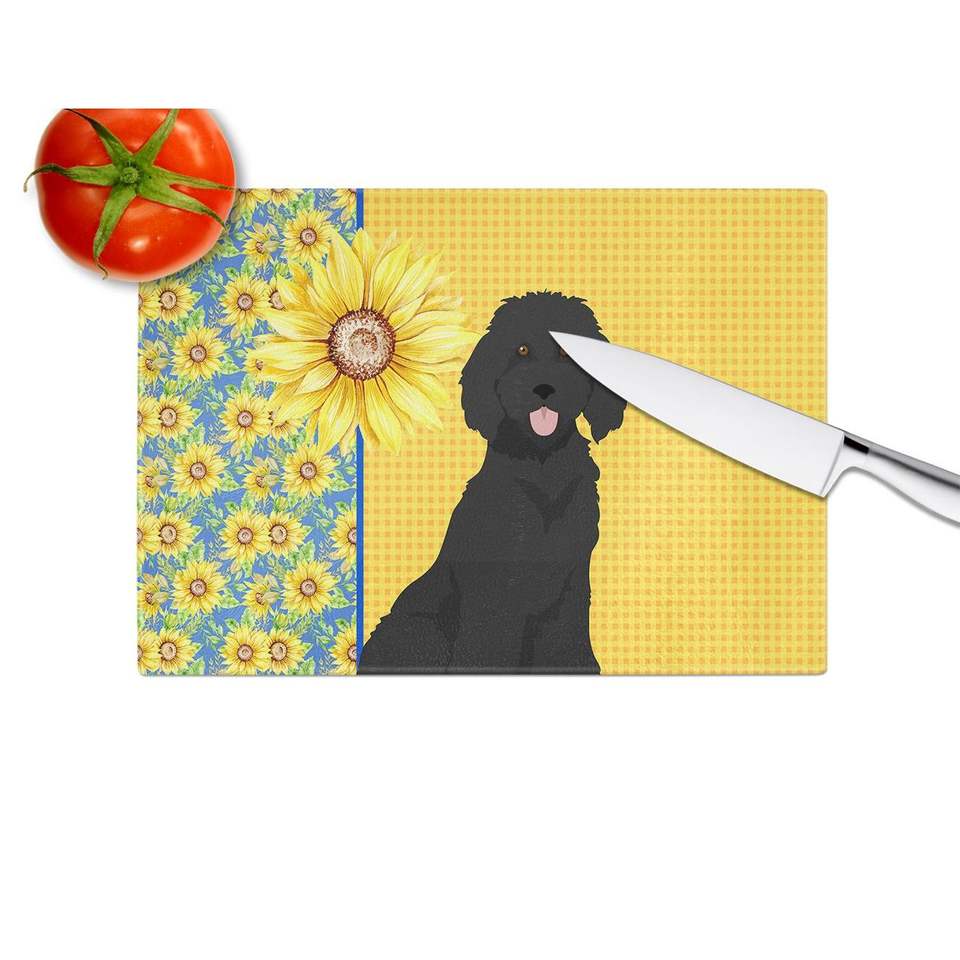 บอร์ดตัดกระจกนิรภัยสำหรับตกแต่งขนาดใหญ่ลายดอกทานตะวันสำหรับฤดูร้อนบอร์ดและจานสำหรับห้องครัวพุดเดิ้ลมาตรฐานสีดำ