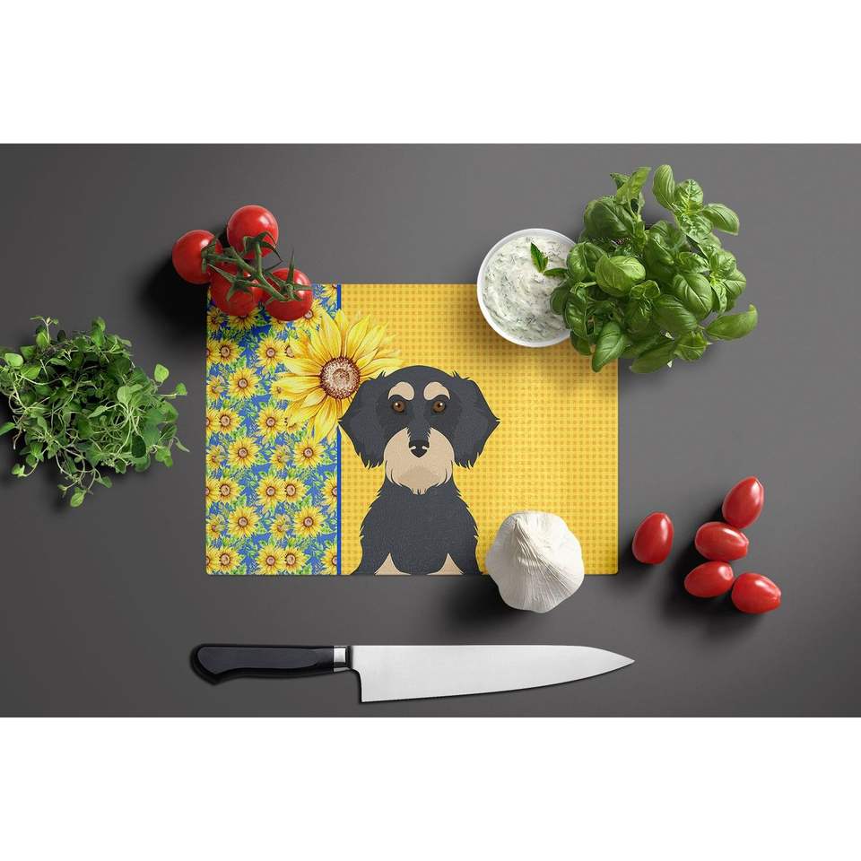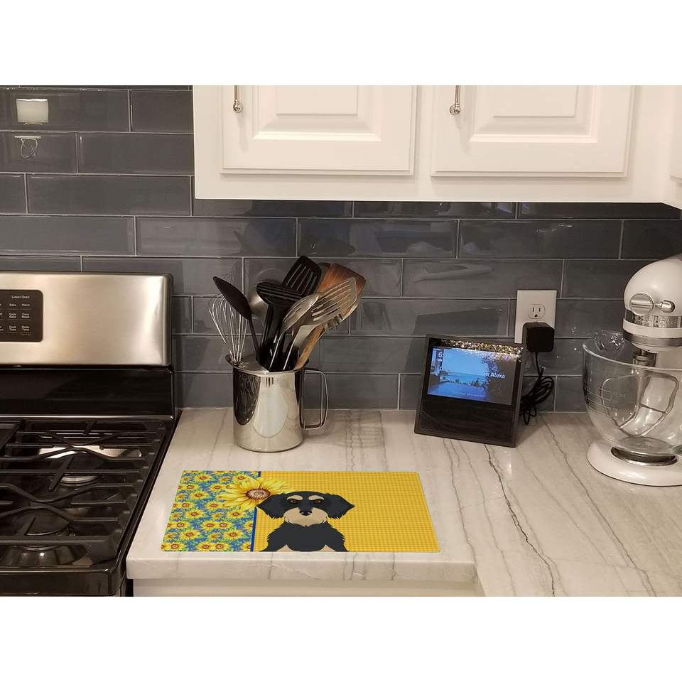แผ่นอาหารที่ใช้ในห้องครัวขนาดใหญ่ลายดอกทานตะวันสำหรับฤดูร้อนเขียงที่เสิร์ฟแบบกว้างสีดำครีมดัชชุนสำหรับตกแต่ง