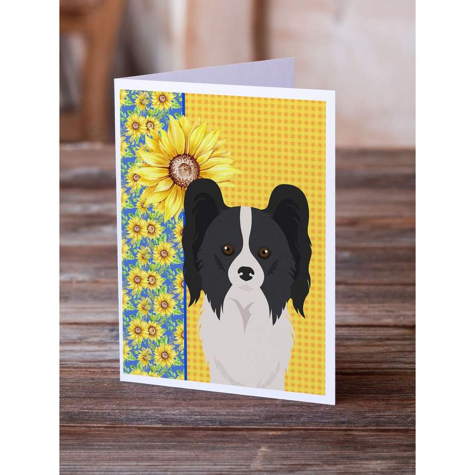 การ์ดอวยพรเปล่า8ชิ้นพร้อมซองจดหมายสำหรับโน้ต A7ลายดอกทานตะวันแปลกๆขนาด5x7สีดำและสีขาว