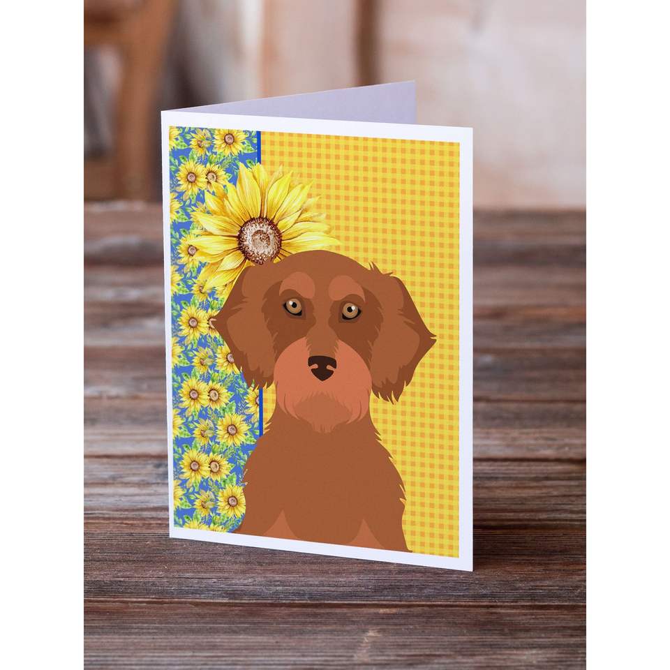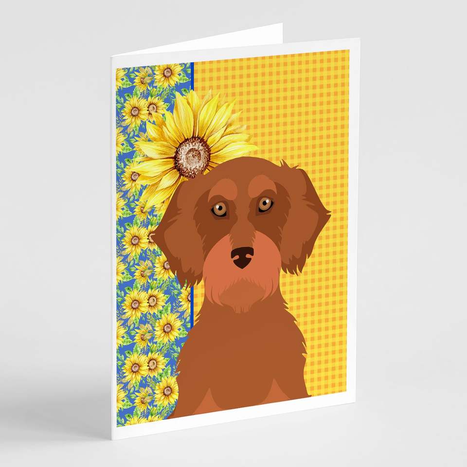 การ์ดอวยพรสีแดงดัชชุนด์ลายดอกทานตะวันพร้อมซองการ์ด A7แปลกๆ8ใบขนาด5x7พร้อมซอง