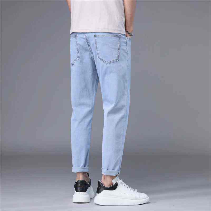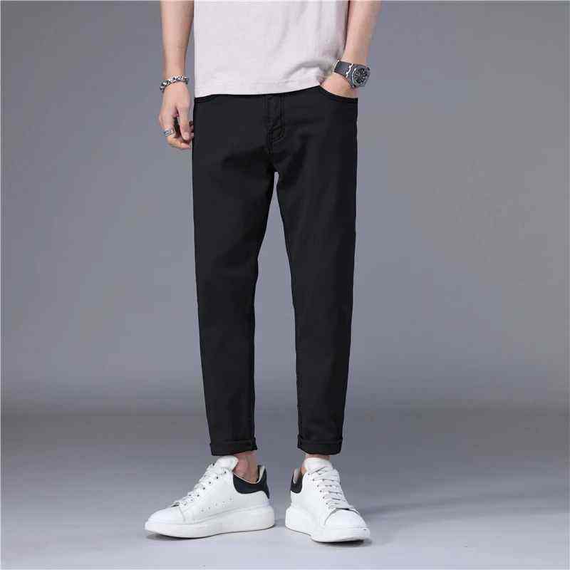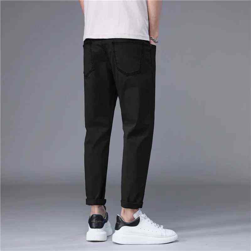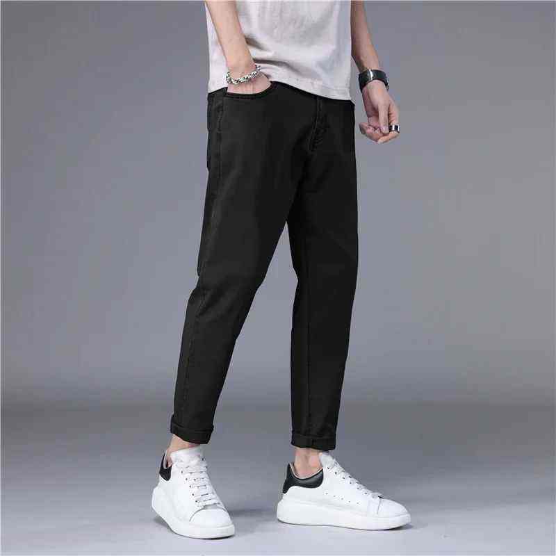 กางเกงยีนส์บางขาสั้นสำหรับผู้ชาย, กางเกงยีนส์ขาสั้นทรงตรงรัดรูปผ้ายีนส์ยืดสีพื้นสีดำสีพื้นสำหรับฤดูร้อน