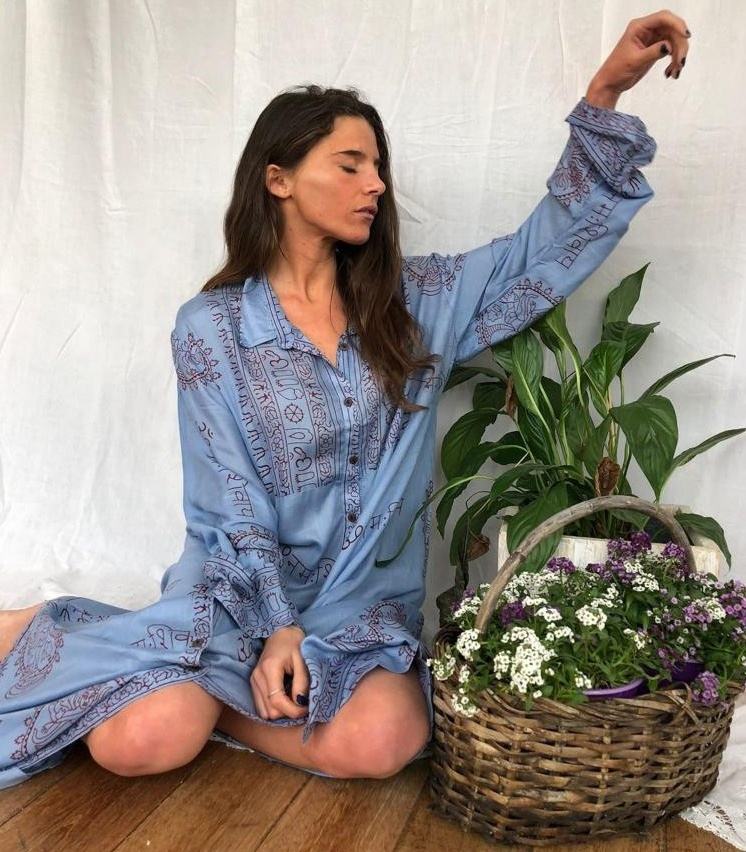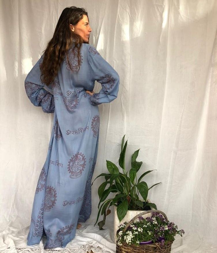 ชุดเดรสผู้หญิงสไตล์โบโฮ,ชุดเดรสพิมพ์ลายผ้าเรยอน Om สำหรับฤดูร้อน
