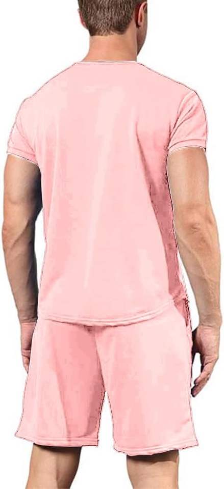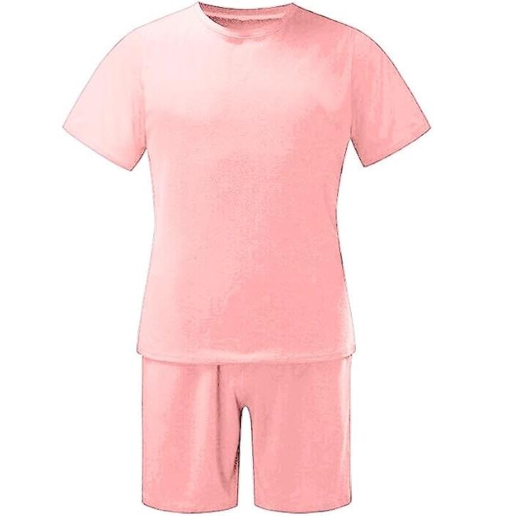 ชุดออกกำลังกายผู้ชายสไตล์สตรีทแวร์สำหรับฤดูร้อน ชุดวอร์ม ชุดโยคะ ชุดออกกำลังกาย ระบายอากาศได้ดี สีชมพูเรียบ ผ้าฝ้าย 100%