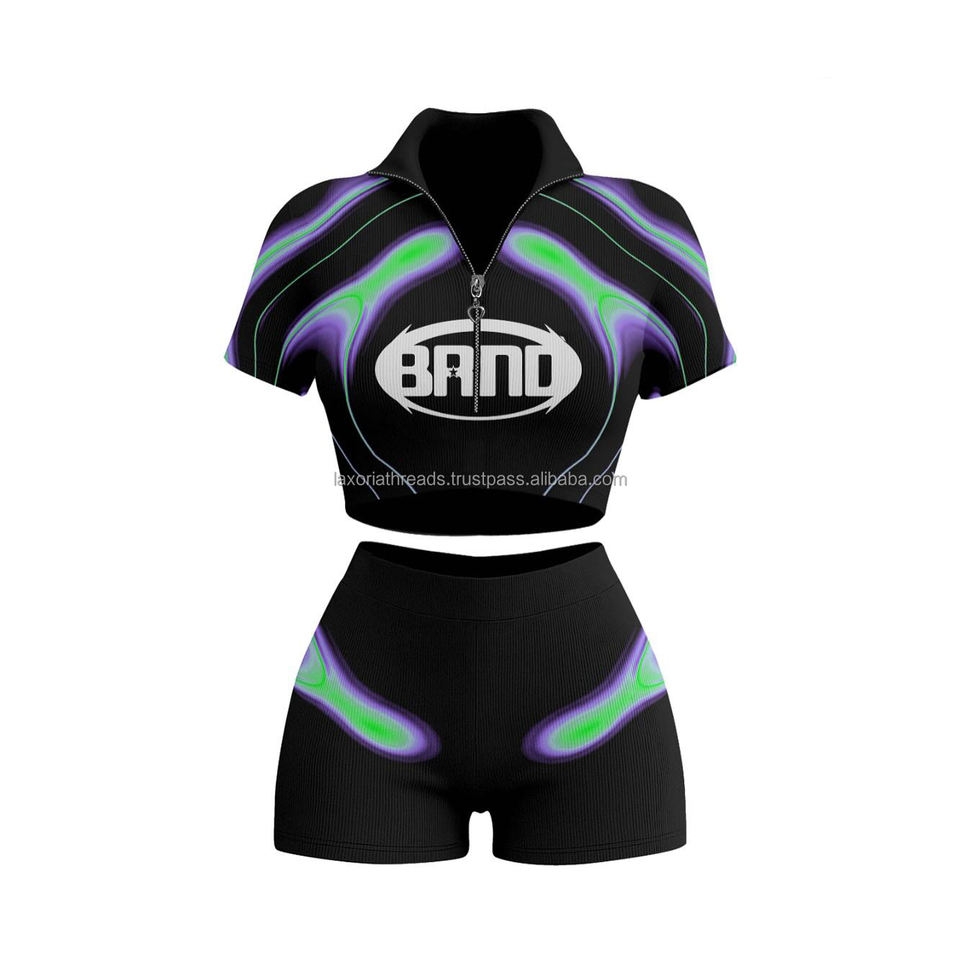 ชุดเซ็ตสองชิ้นสำหรับฤดูร้อน เสื้อผ้าผู้หญิง ชุดเซ็ตพร้อมปักโลโก้ กางเกงขาสั้น เสื้อครอปท็อป ชุดเซ็ตสองชิ้นลำลองสำหรับผู้หญิง ชุดลำลองสไตล์สตรีทแวร์สำหรับผู้หญิง