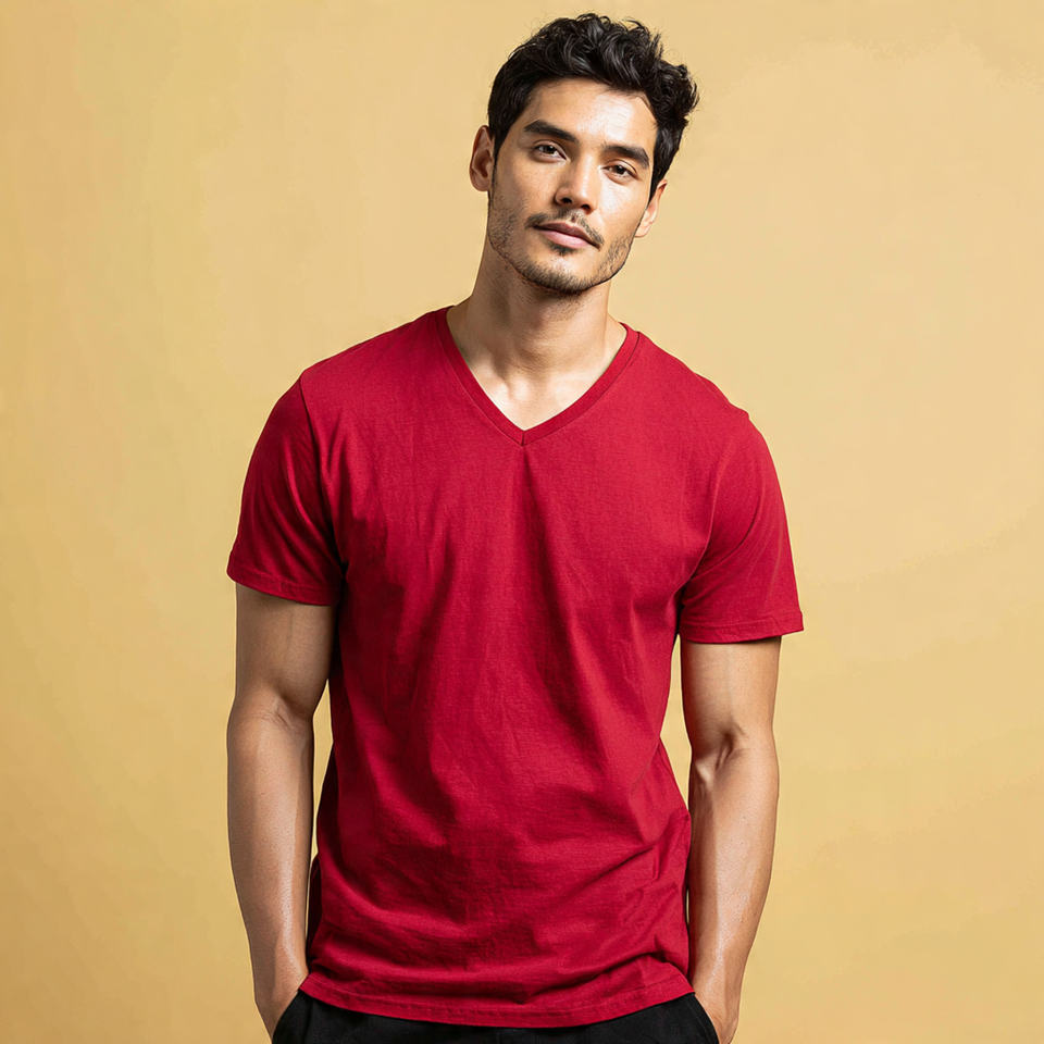 เสื้อยืดคอวีผู้ชาย ใส่ลำลอง