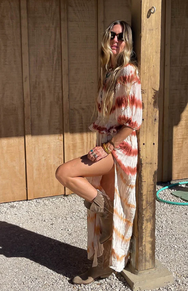 ชุดแมกซี่เดรสยาวมัดย้อมพิมพ์ลายสีพื้นซักได้ธรรมชาติใหม่วันหยุดฤดูร้อน