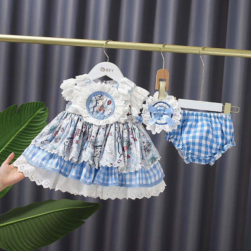 เสื้อผ้าเด็กสไตล์วินเทจฤดูร้อน ชุดเดรสเด็กผู้หญิงตัวเล็กสไตล์สเปน โบว์ผูกผม ขายส่งเสื้อผ้าเด็ก 17AE2120674