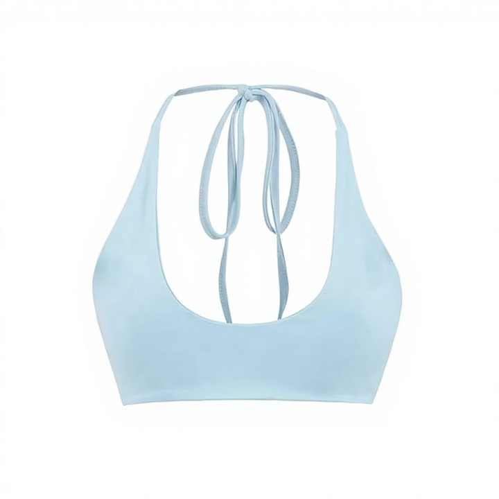 เสื้อครอปสไตล์เกาหลีวินเทจสำหรับฤดูร้อน คอวีผูกโบว์ ทรงเข้ารูป สีหวาน สายคล้องคอแบบสั้น ผ้าถักผสมสแปนเด็กซ์/คอตตอน ระบายอากาศได้ดี
