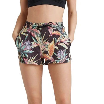กางเกงขาสั้นชายหาดของผู้หญิงแห้งเร็วระบายอากาศได้ดีพิมพ์โลโก้ตามสั่งสี100% ลายโพลีเอสเตอร์
