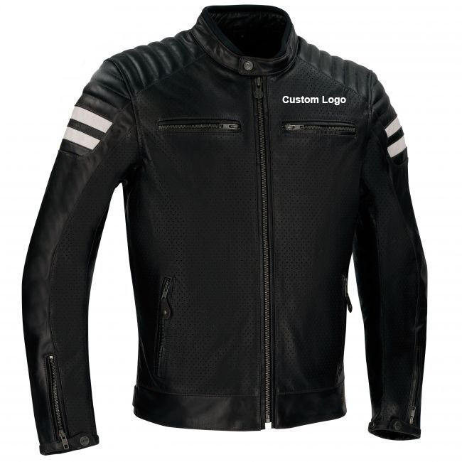 เสื้อแจ็กเก็ตมอเตอร์ไซค์หนังแท้สำหรับผู้ชายเสื้อแจ็คเก็ตแข่งรถมอเตอร์ไซด์คาเฟ่