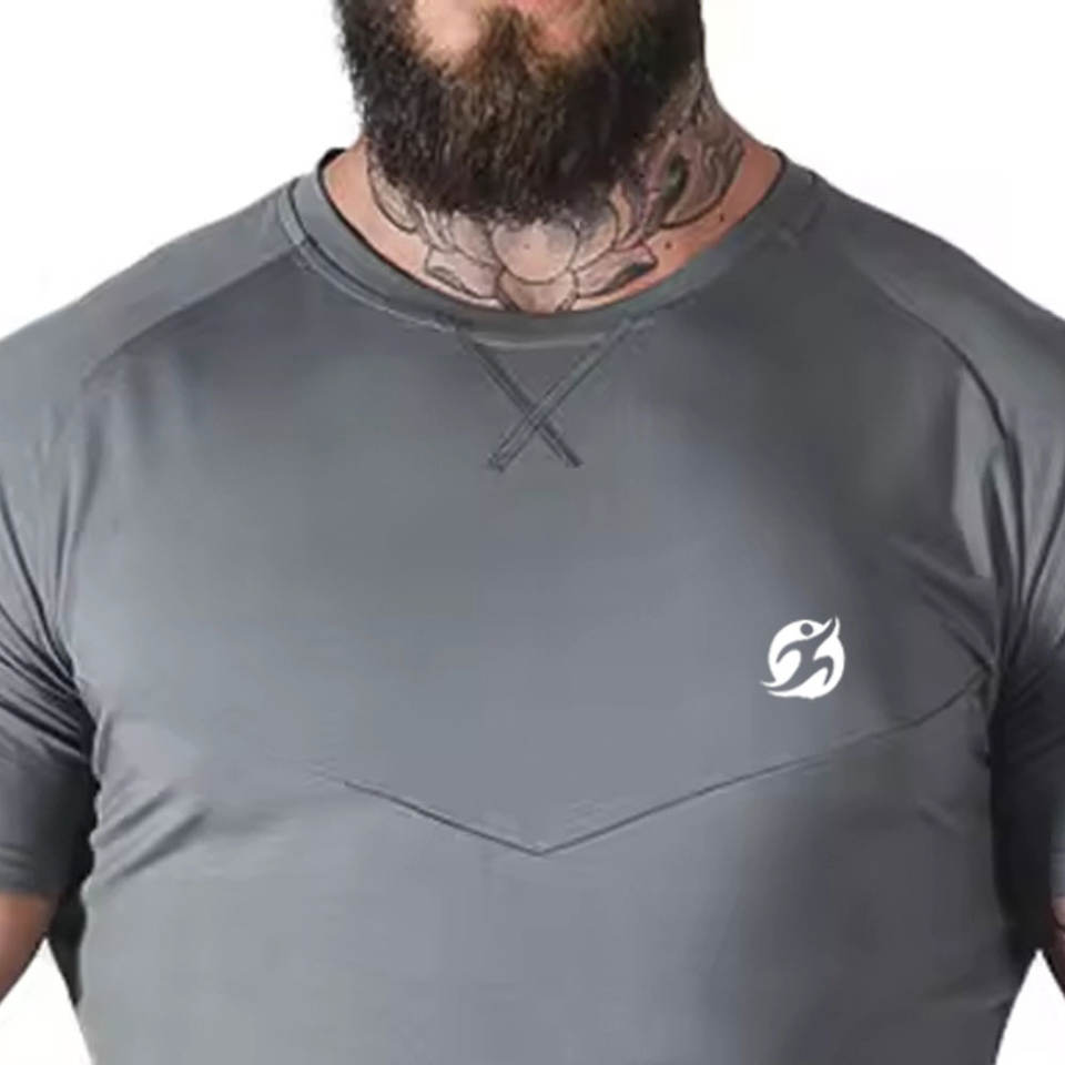 เสื้อยืดแขนสั้นผู้ชายสำหรับฤดูร้อน ปรับแต่งขนาดได้ ขายดี แห้งเร็ว ทรงเข้ารูป ระบายอากาศดี คอกลม พร้อมโลโก้ด้านหน้า