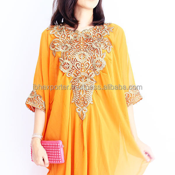 ชุดคาฟตันผ้าเนื้อนิ่มสำหรับเด็กสาวมุสลิมต้องการการออกแบบปักที่เรียบง่ายสำหรับฤดูร้อน