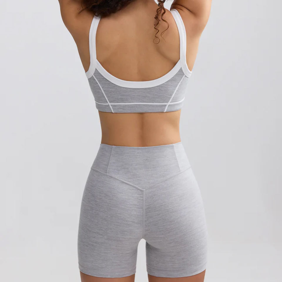 ชุดโยคะสองชิ้นสำหรับฤดูร้อน ผู้หญิง ทรงเข้ารูป ไซส์ปกติ ชุดออกกำลังกาย สไตล์ใหม่ ออกแบบ OEM เสื้อชั้นในและกางเกงขาสั้น ชุดสองชิ้น