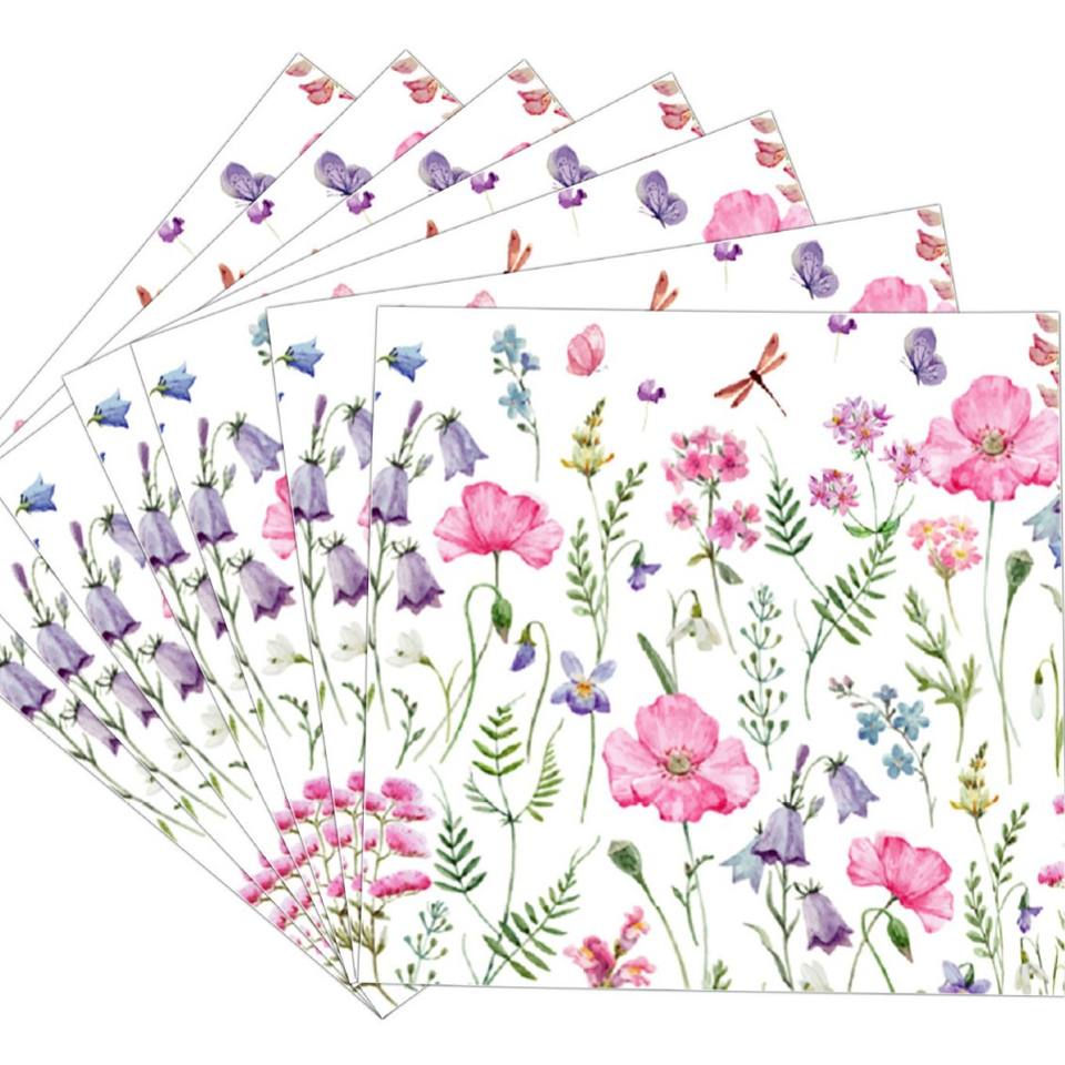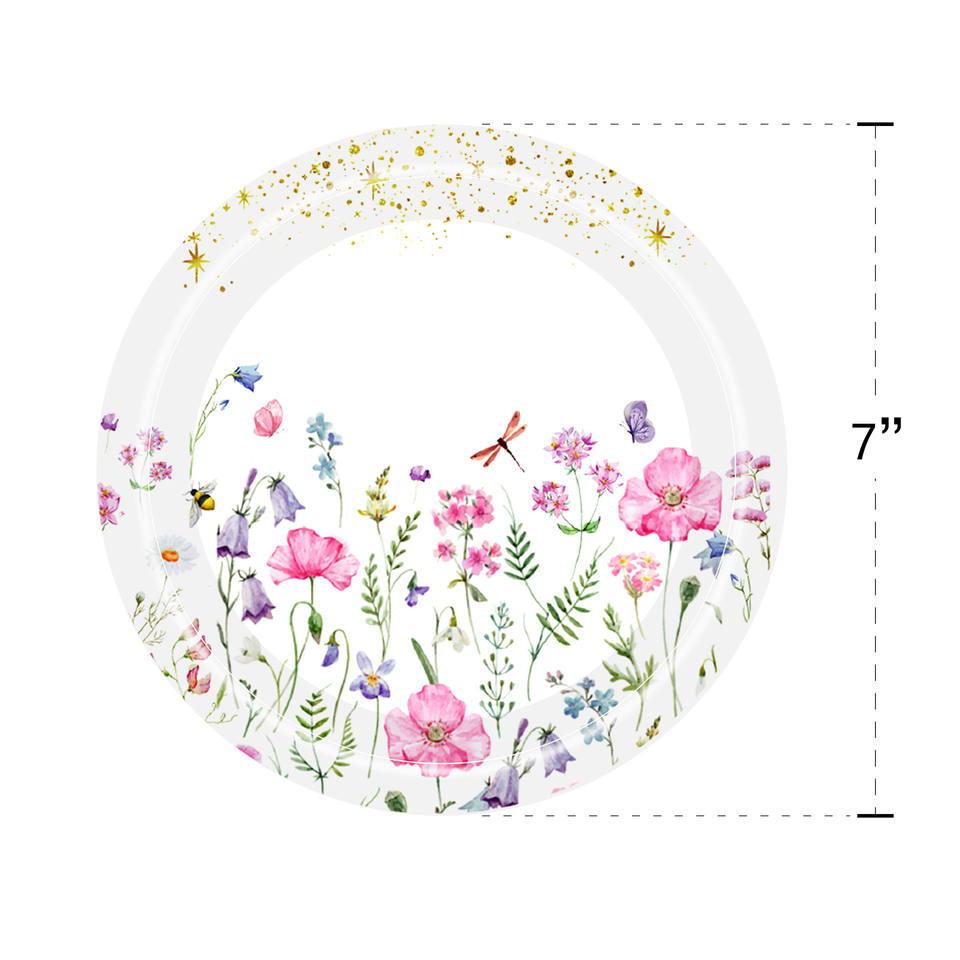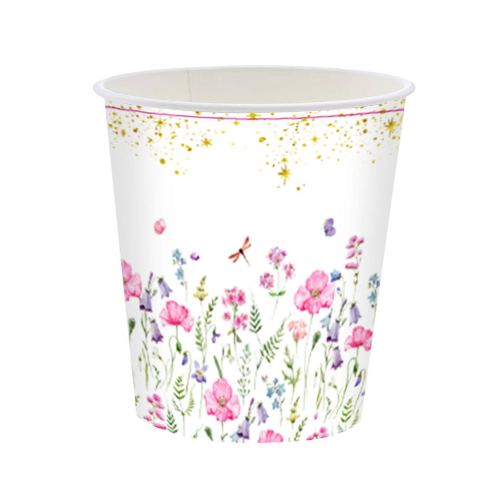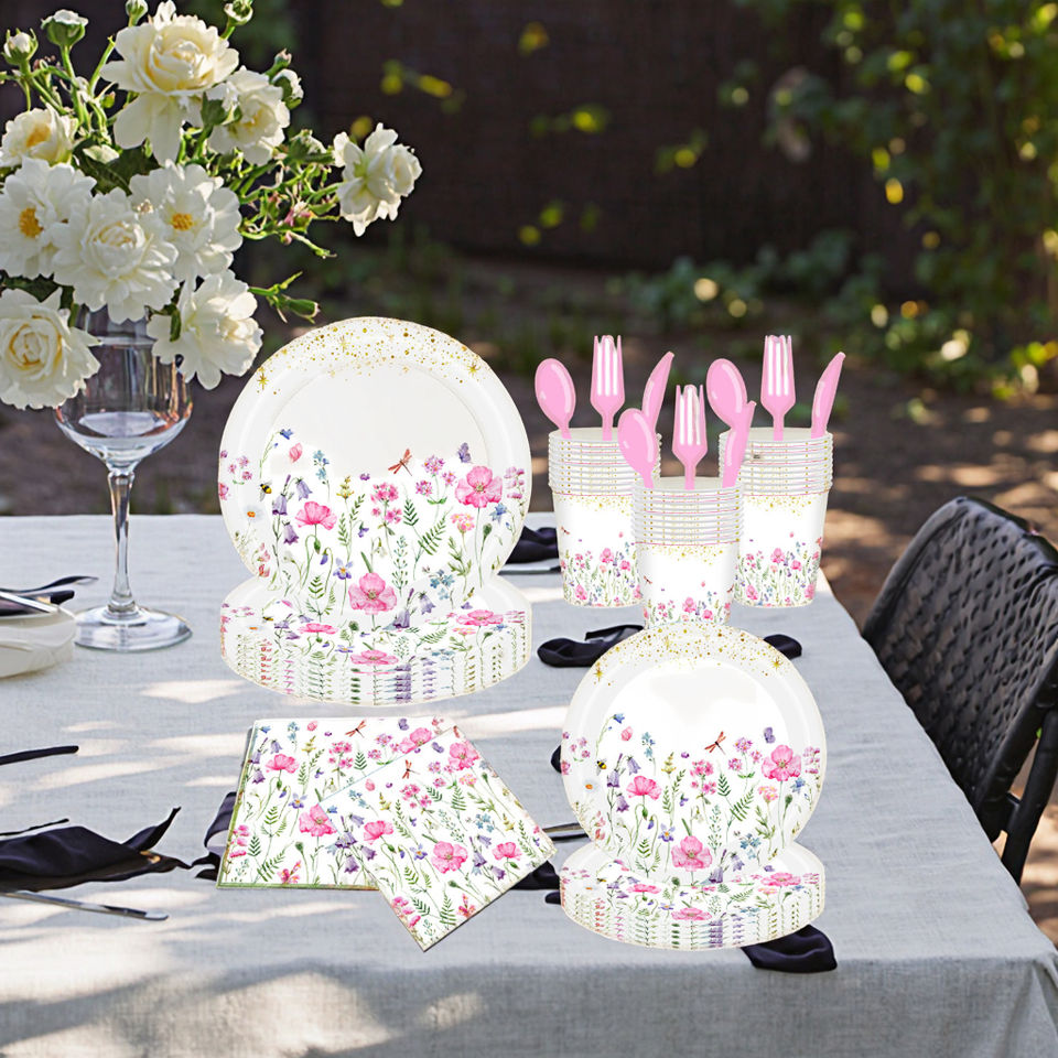 ชุดเครื่องใช้บนโต๊ะอาหารกระดาษแบบใช้แล้วทิ้งลายการ์ตูนดอกไม้ป่าฤดูร้อนถ้วยเล็กมีดผ้าเช็ดตัวส้อมจานช้อน