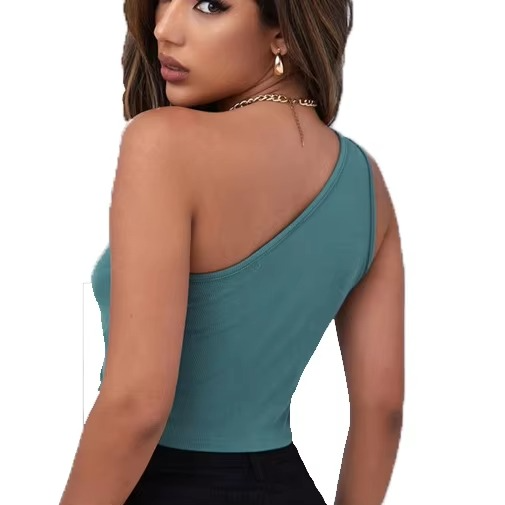 เสื้อครอปเปิดไหล่เฉียงสำหรับผู้หญิงใส่ฤดูร้อนคอปกโบว์โชว์หลังแห้งเร็วระบายอากาศได้ดีเสื้อเบลาส์บราครอปเปิดไหล่ข้างเดียวสำหรับใส่เล่นกีฬา