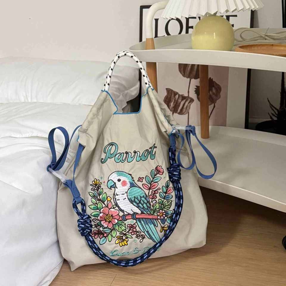 Summer Women New Nylon Embroidery Bag Fashion Large Capacity Shoulder Shopping Bag