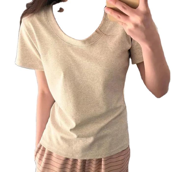 เสื้อยืดแขนสั้นเรียบง่ายสำหรับผู้หญิงฤดูร้อนเสื้อคอกลมเข้ารูปสีดำและสีขาวลำลองพิมพ์ลายดิจิตอลสำหรับเด็กผู้หญิง