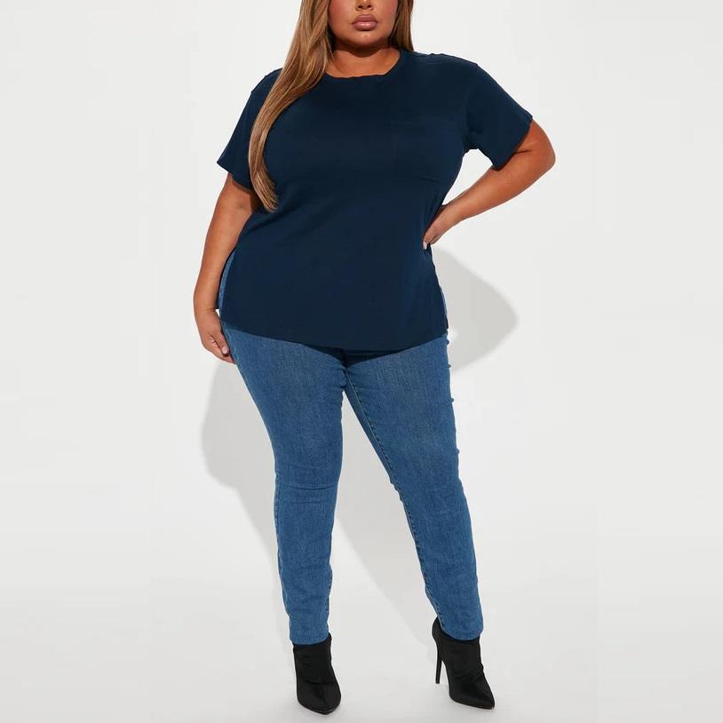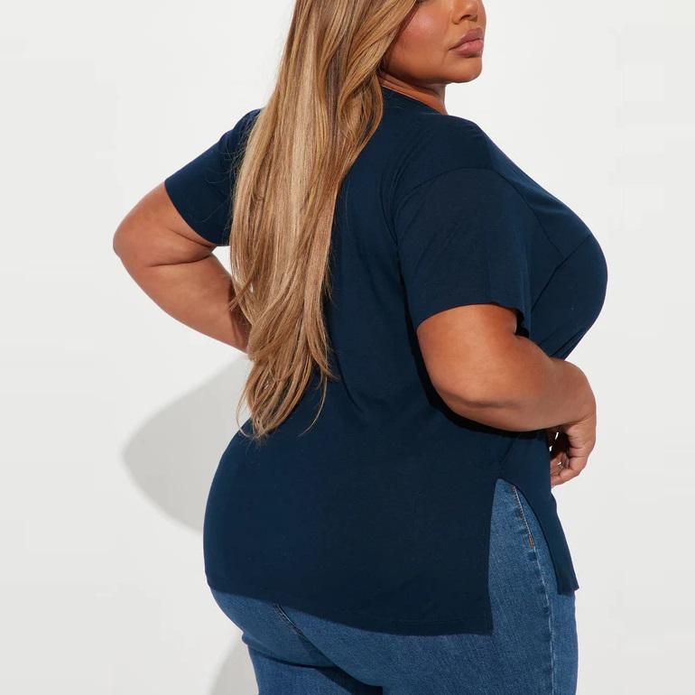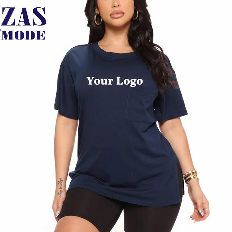 เสื้อยืดผู้หญิงลำลองเซ็กซี่สำหรับฤดูร้อน คอกลม ดีไซน์ 3 มิติ ไม่ซ้ำใคร ผ่าข้าง แขนสั้น ผ้าฝ้ายถัก ระบายอากาศ ทรงปกติ 220