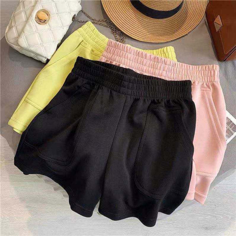 กางเกงขาสั้นกีฬาลำลองสำหรับผู้หญิงสำหรับฤดูร้อนกางเกงวอร์มขากว้างทรงหลวมสีล้วนสำหรับใส่ไปยิมโยคะ
