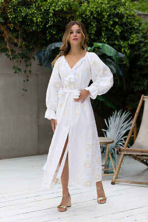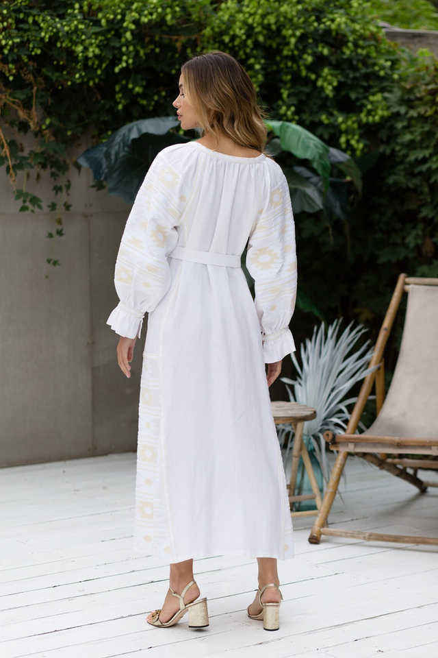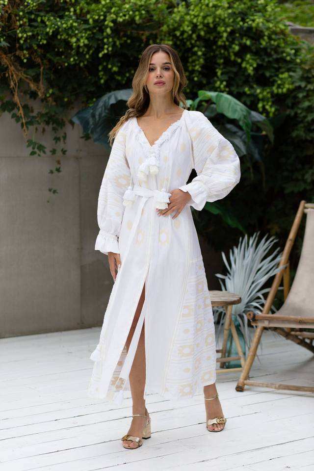 เดรสลำลองหรูหราของผู้หญิงสำหรับฤดูร้อนเดรสผ้าคอตตอนปักลายดอกไม้ชุดเดรสที่เป็นมิตรต่อสิ่งแวดล้อม