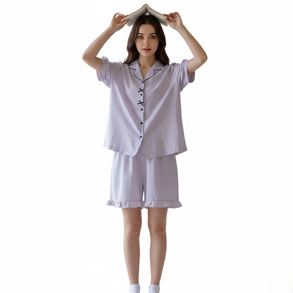 Summer Women's Lightweight Breathable Loungewear Set, 100% Polyester Soft Striped Texture Pajama 2-Piece Set