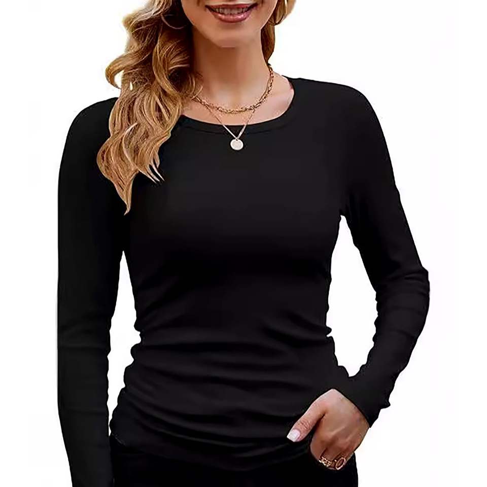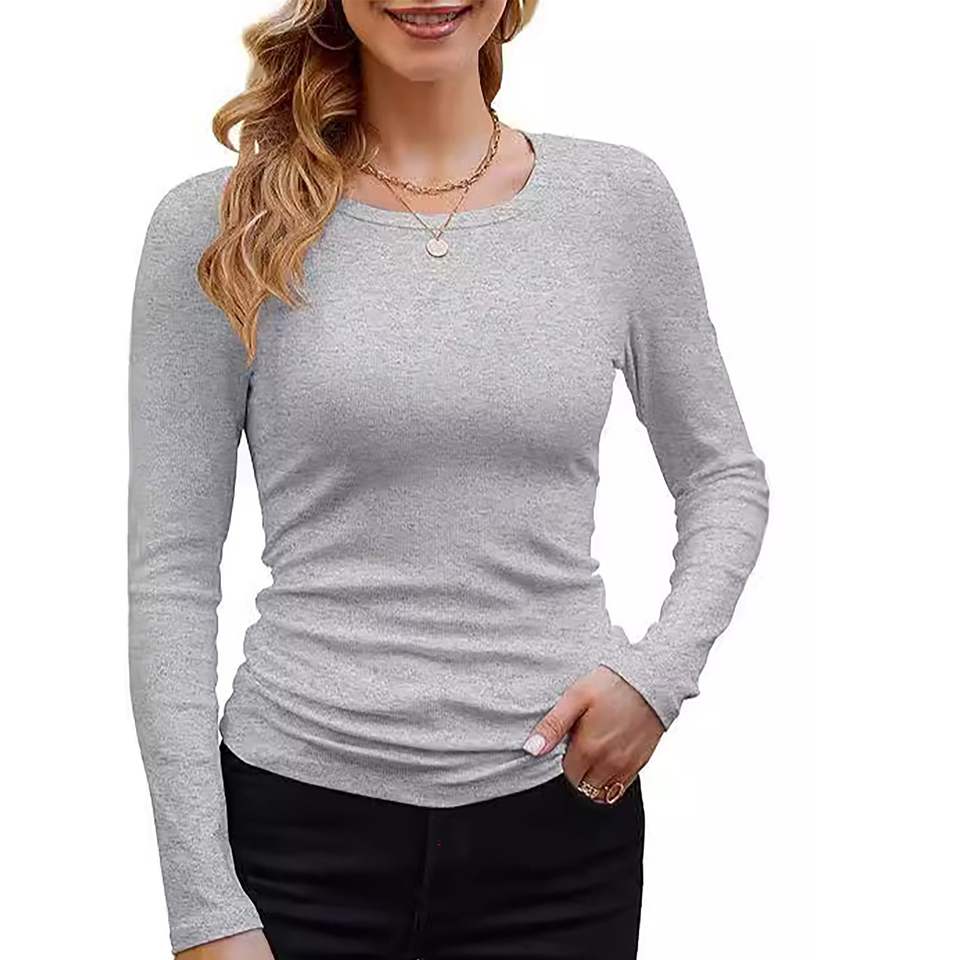 เสื้อยืดแขนยาวผู้หญิงทรงเข้ารูป ผ้าโพลีเอสเตอร์ผสมคอตตอน เป็นมิตรกับสิ่งแวดล้อม พิมพ์โลโก้ได้ตามต้องการ ขายดีประจำปี 2026 เหมาะสำหรับใส่ลำลองช่วงฤดูร้อน