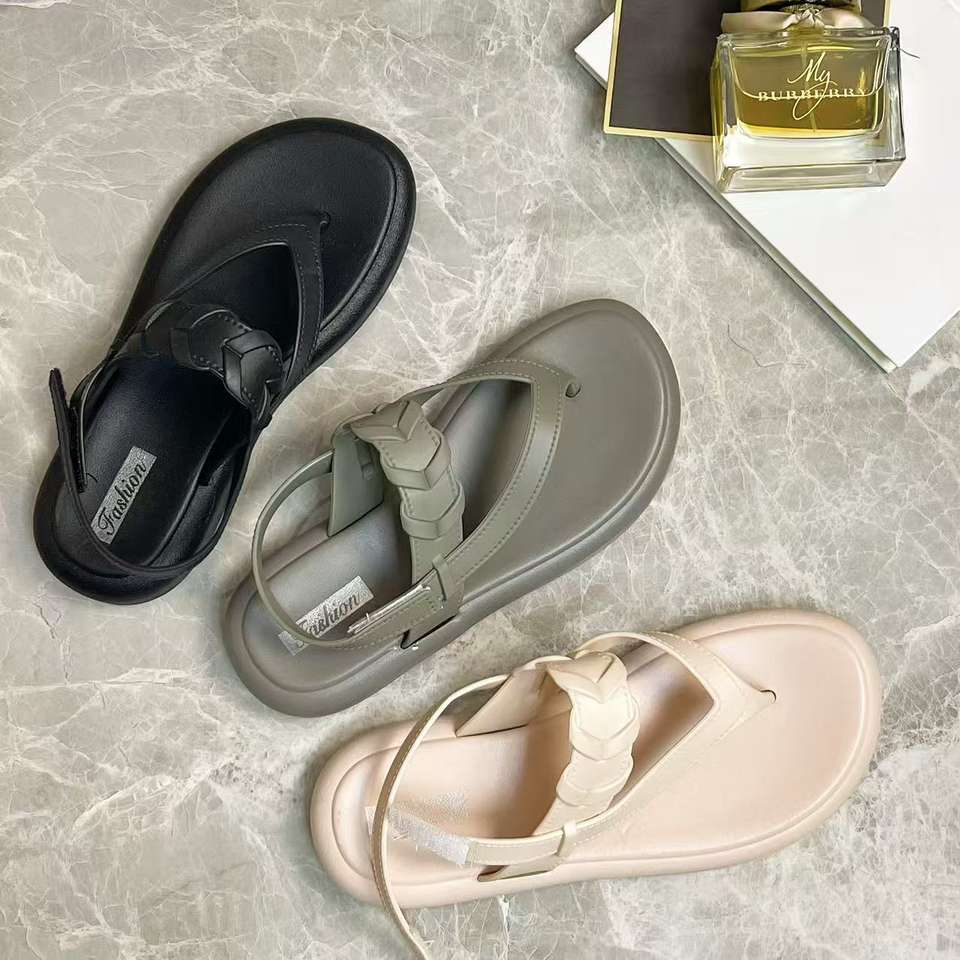 เทรนด์แฟชั่นฤดูร้อนและฤดูใบไม้ผลิ รองเท้าแตะหนังแท้แบบเปิดนิ้วเท้าสำหรับผู้หญิง ดีไซน์สายรัดและโครงสร้างที่ทนทาน