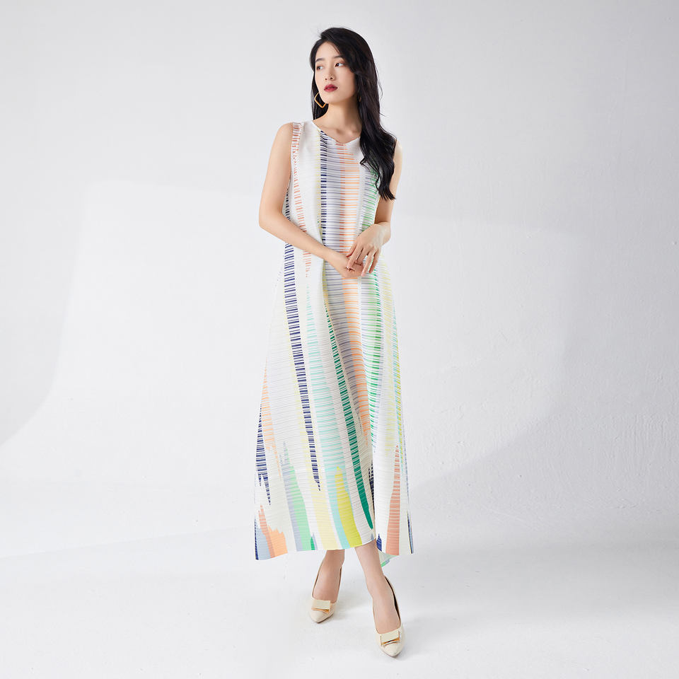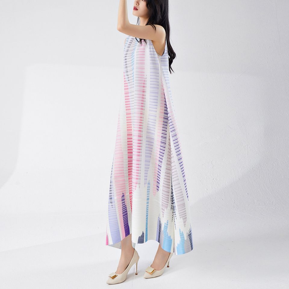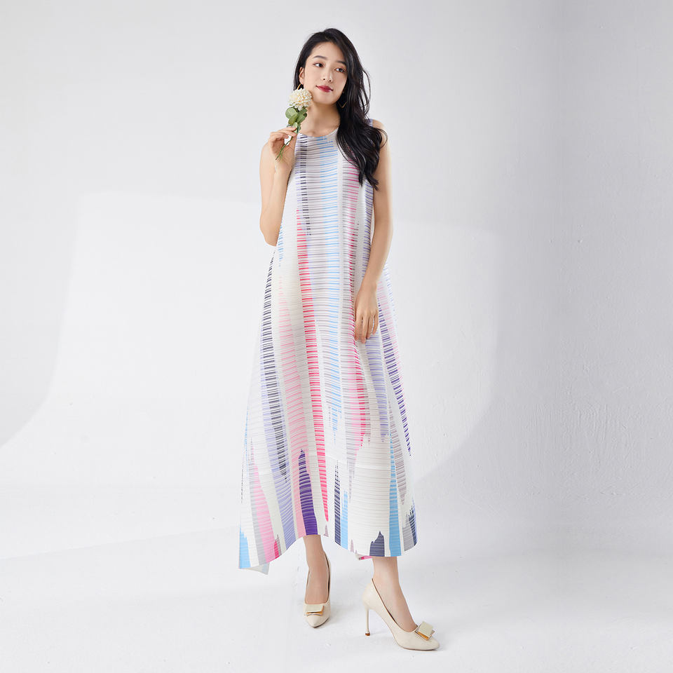Keywords:Pleated Print dress